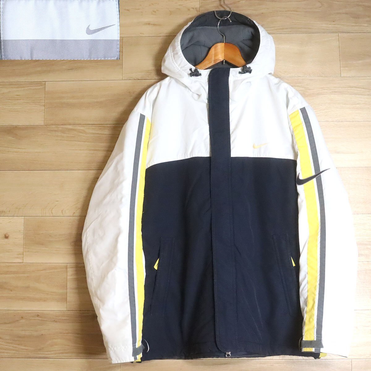 H6R/R5.19-5 Nike ナイキ ナイロンパーカー 中綿 裏フリース パデットジャケット フーディー ロゴ刺繍 L メンズ アメリカ古着