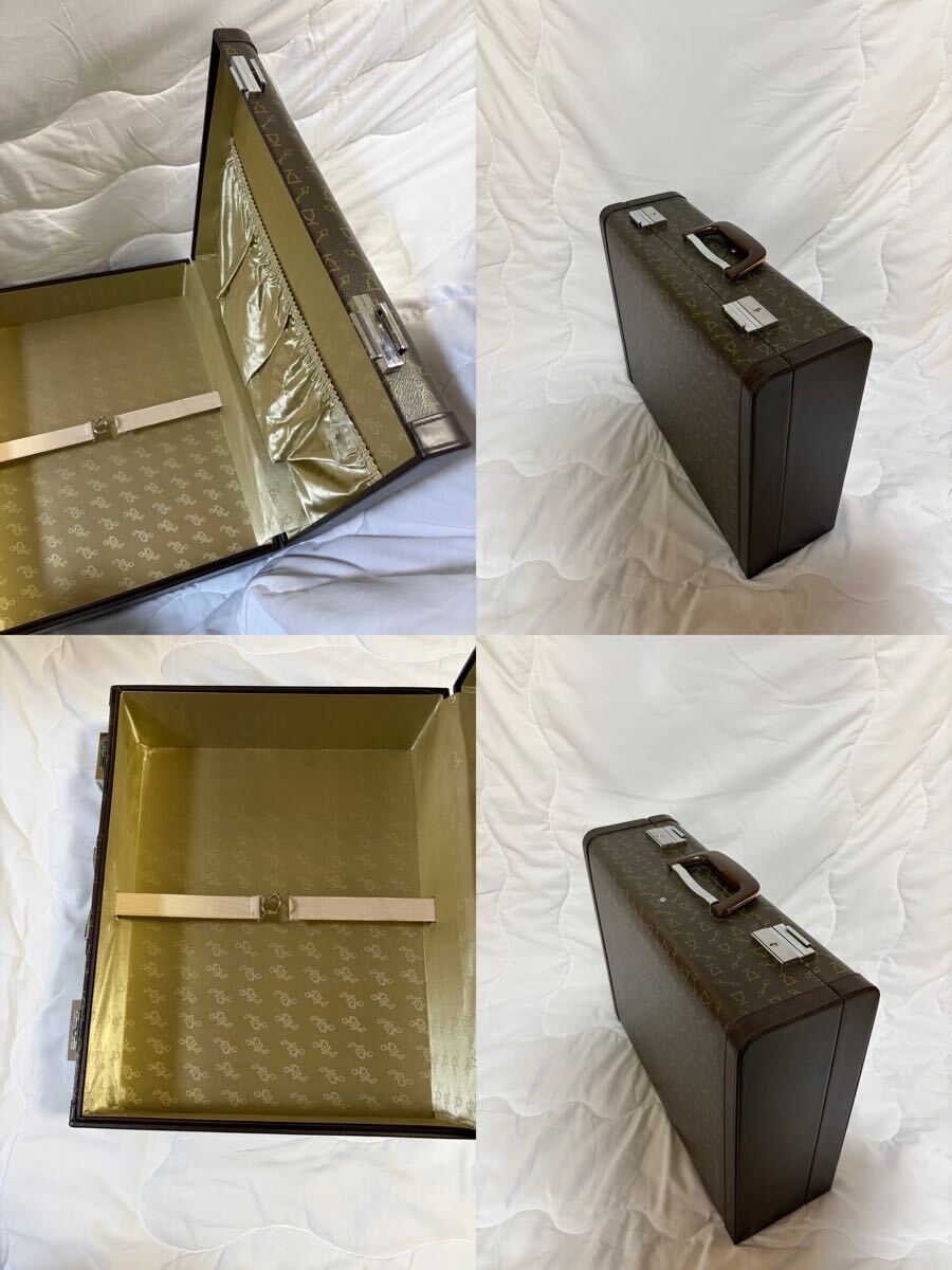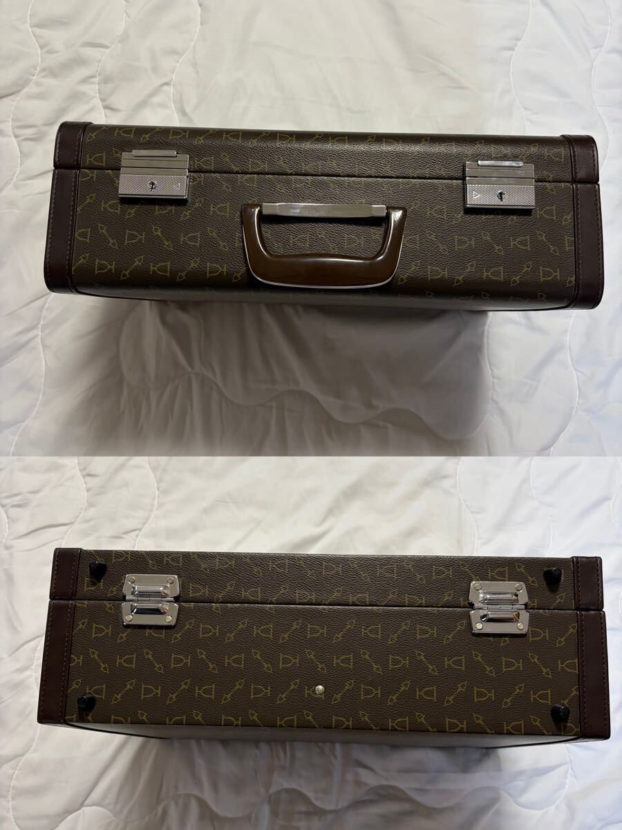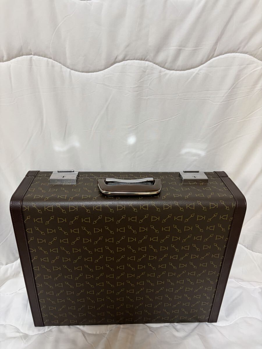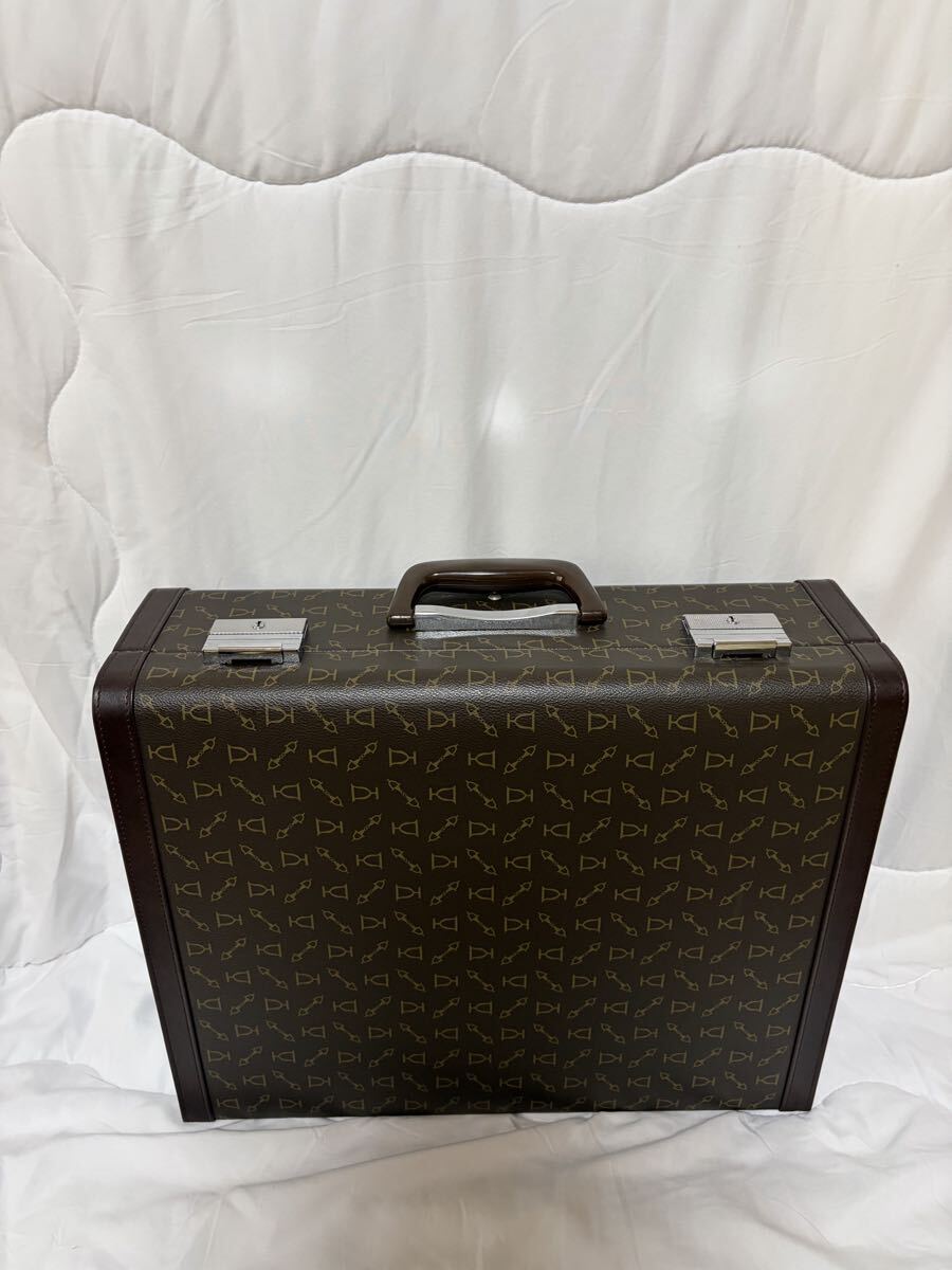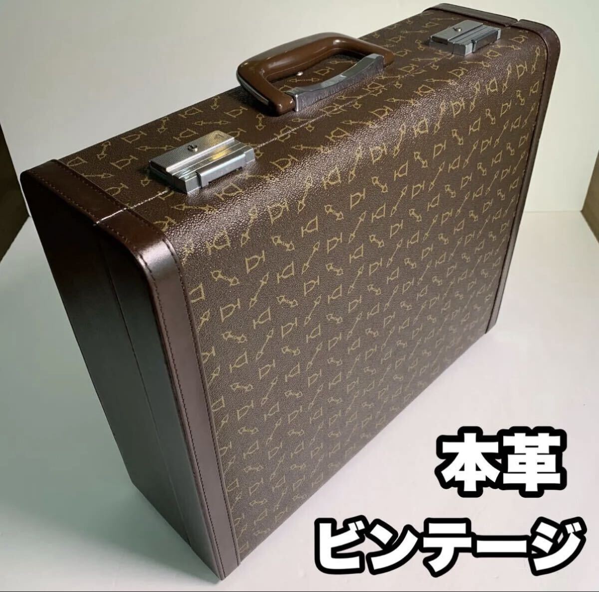 本革製のビンテージビジネスバッグ、ロゴパターンが特徴。