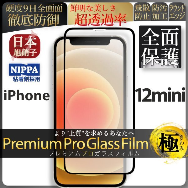 iPhone 12 mini 全面保護 強化ガラスフィルム 旭硝子 自動吸着 99%透過 保護フィルム 液晶保護フィルム