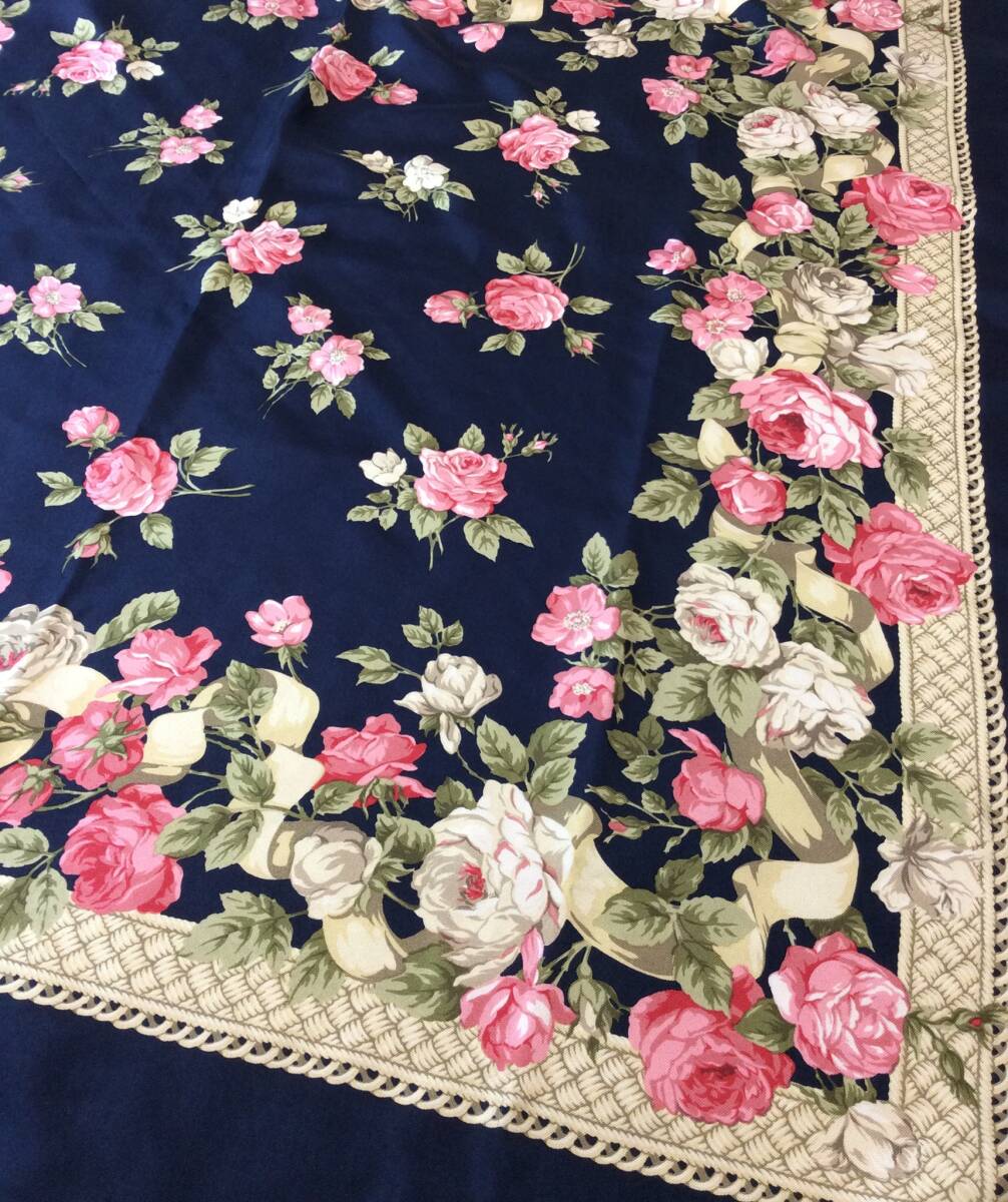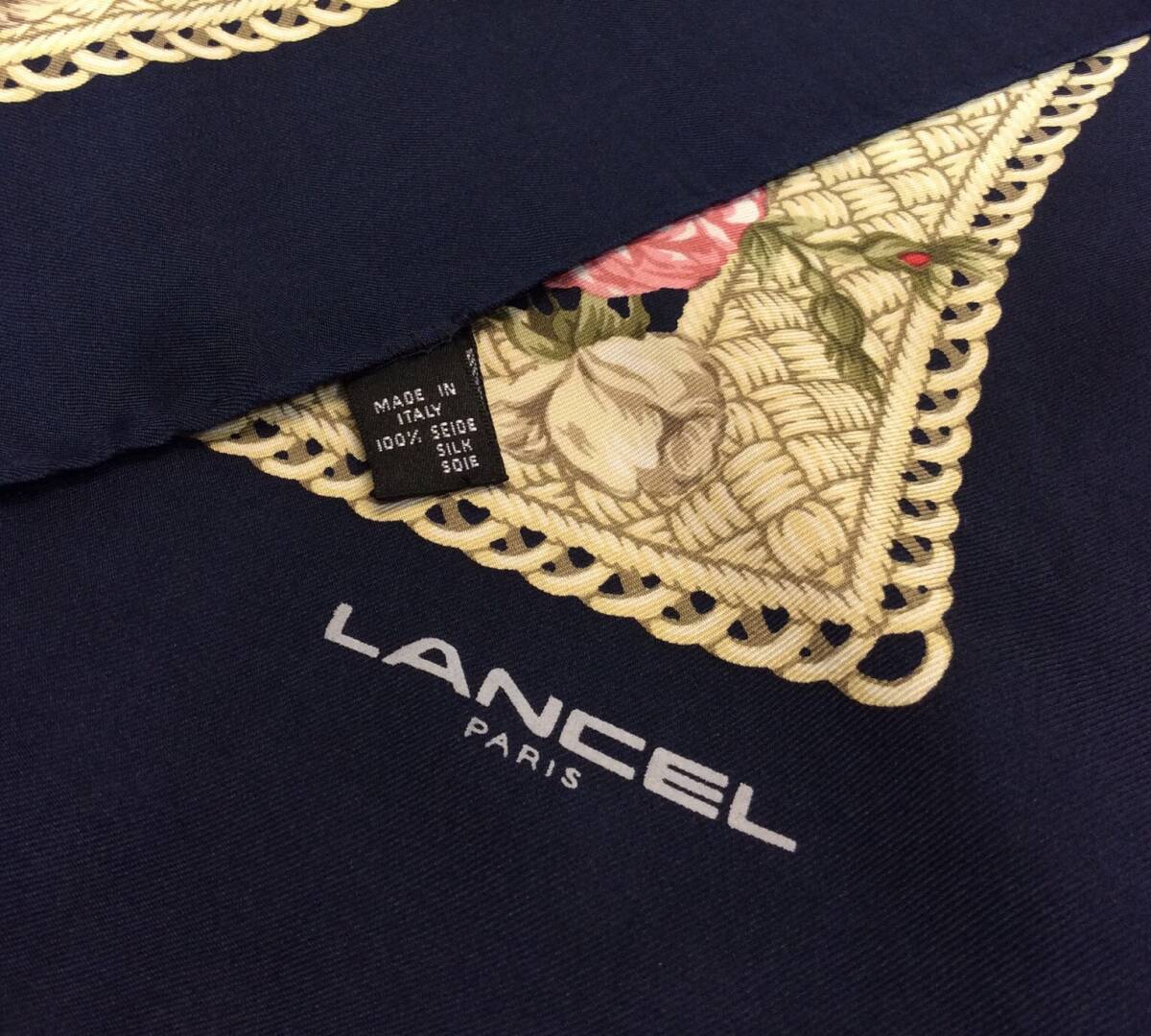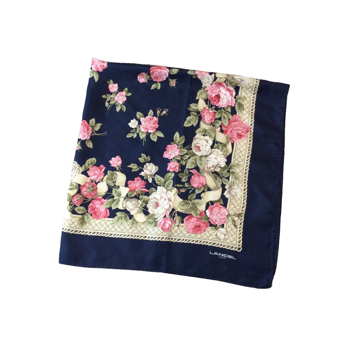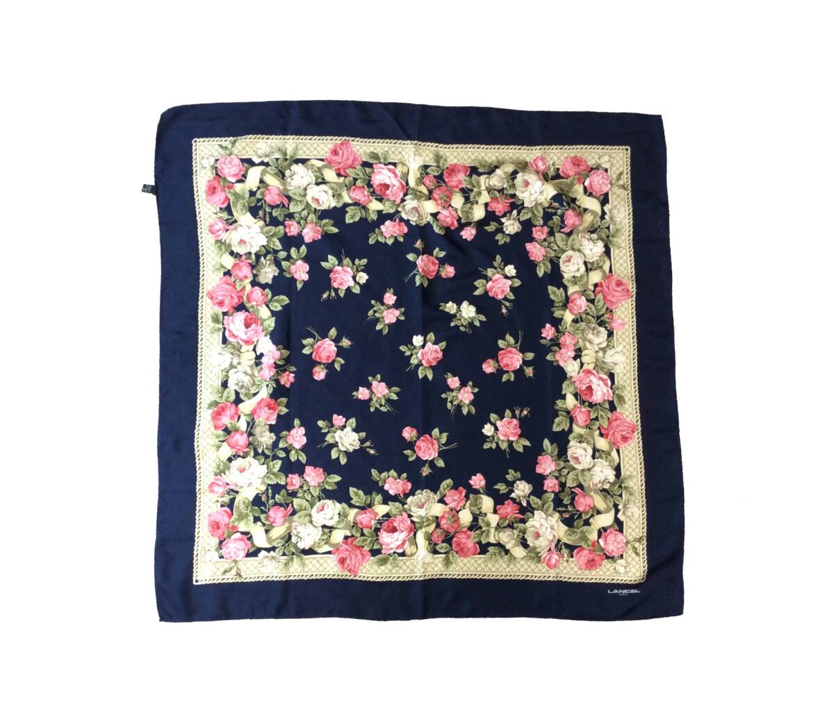 LANCEL ランセル ITALY製 シルク スカーフ 花柄 イタリア製 ネイビー 送料250円