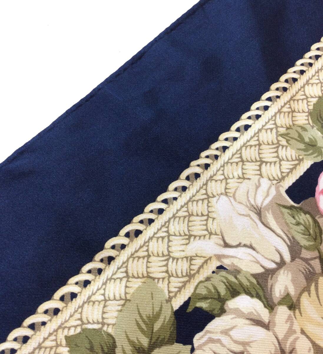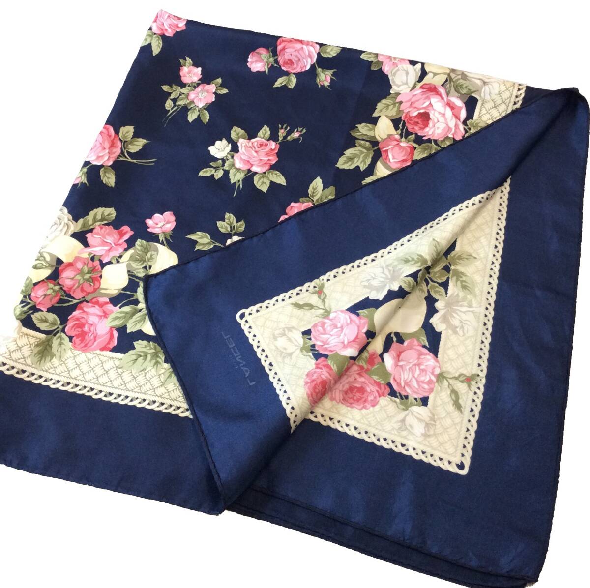 LANCEL ランセル ITALY製 シルク スカーフ 花柄 イタリア製 ネイビー