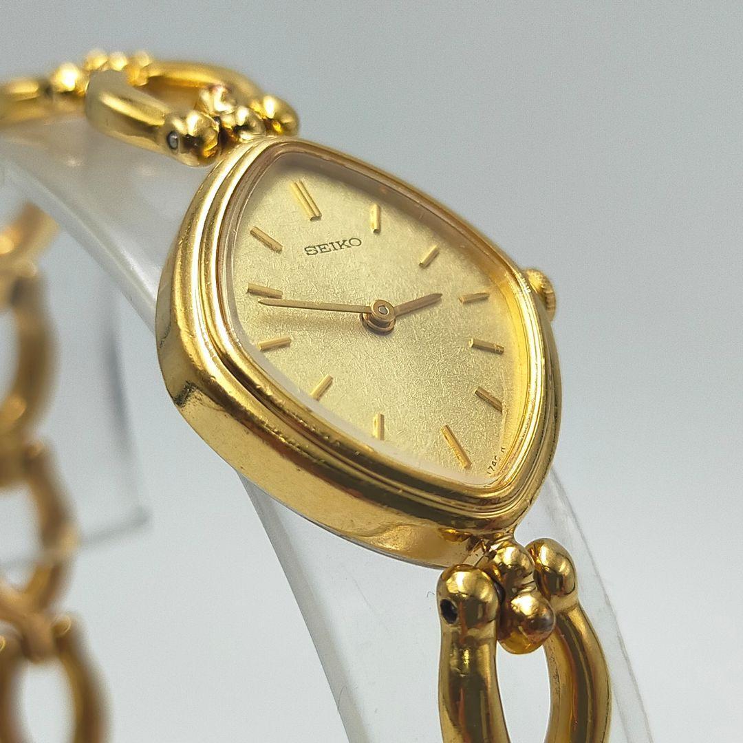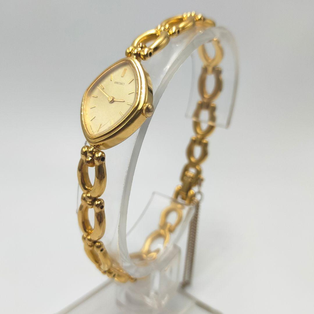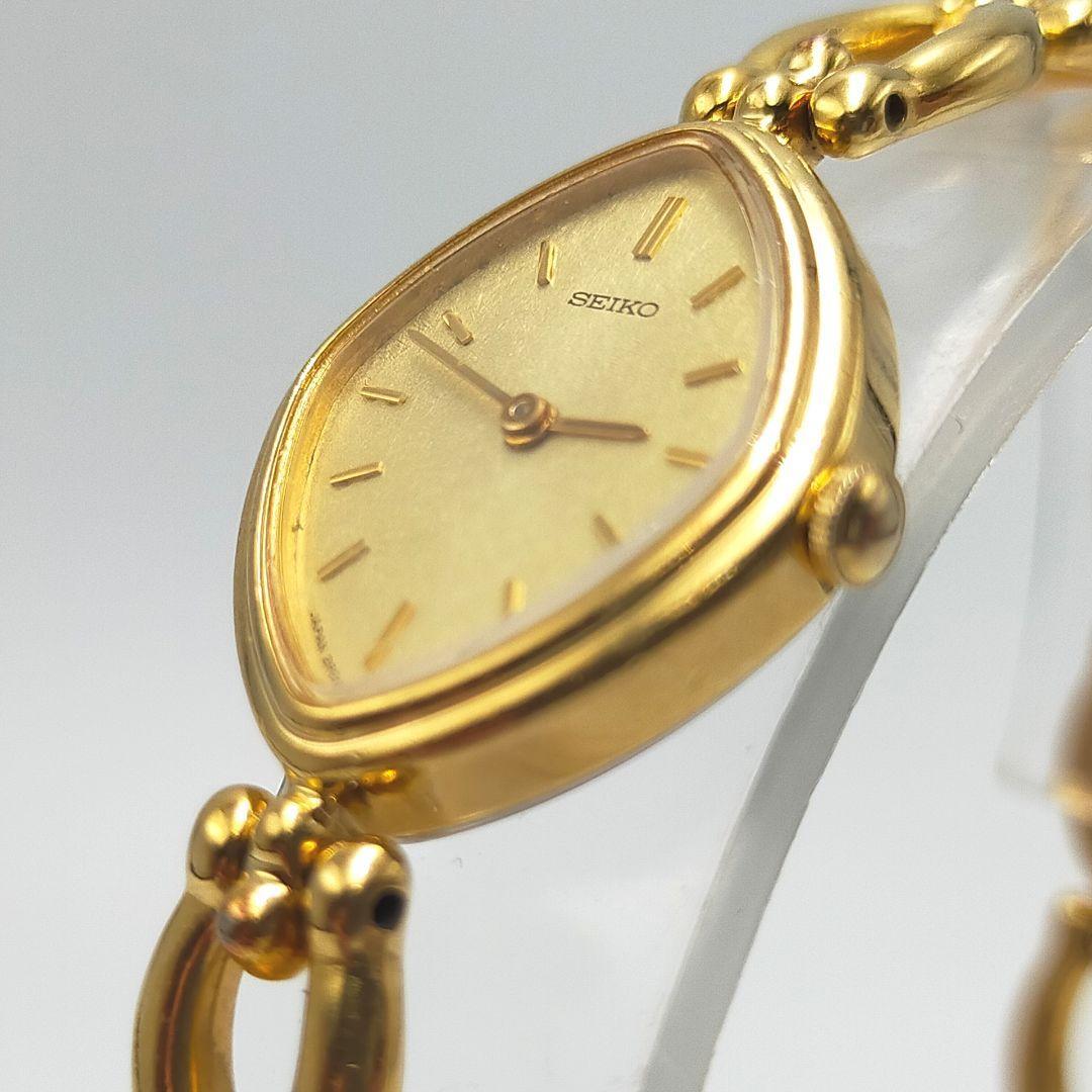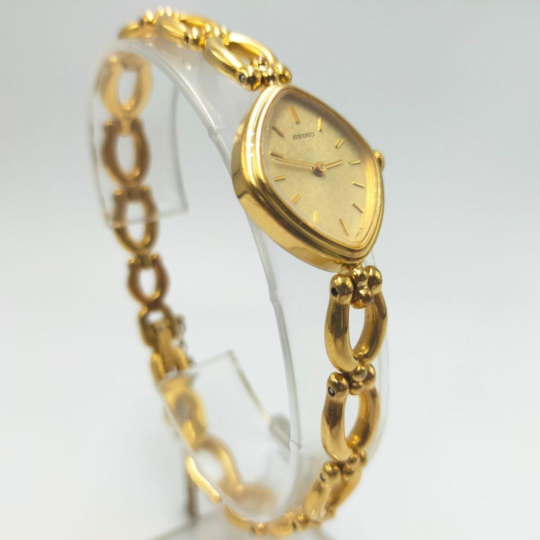 【稼働品】SEIKO 希少 ダイヤモンド型ケース ゴールド レディース腕時計
