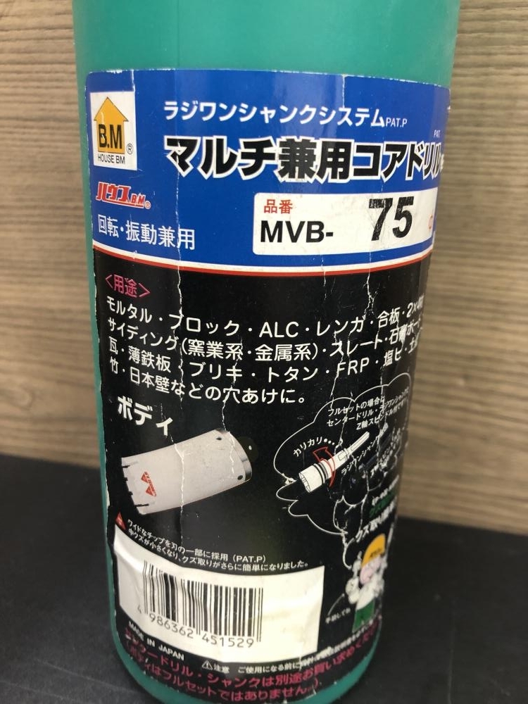 ハウスBM ■商品名 マルチ兼用コアドリル ■型番 MVB-75φ |