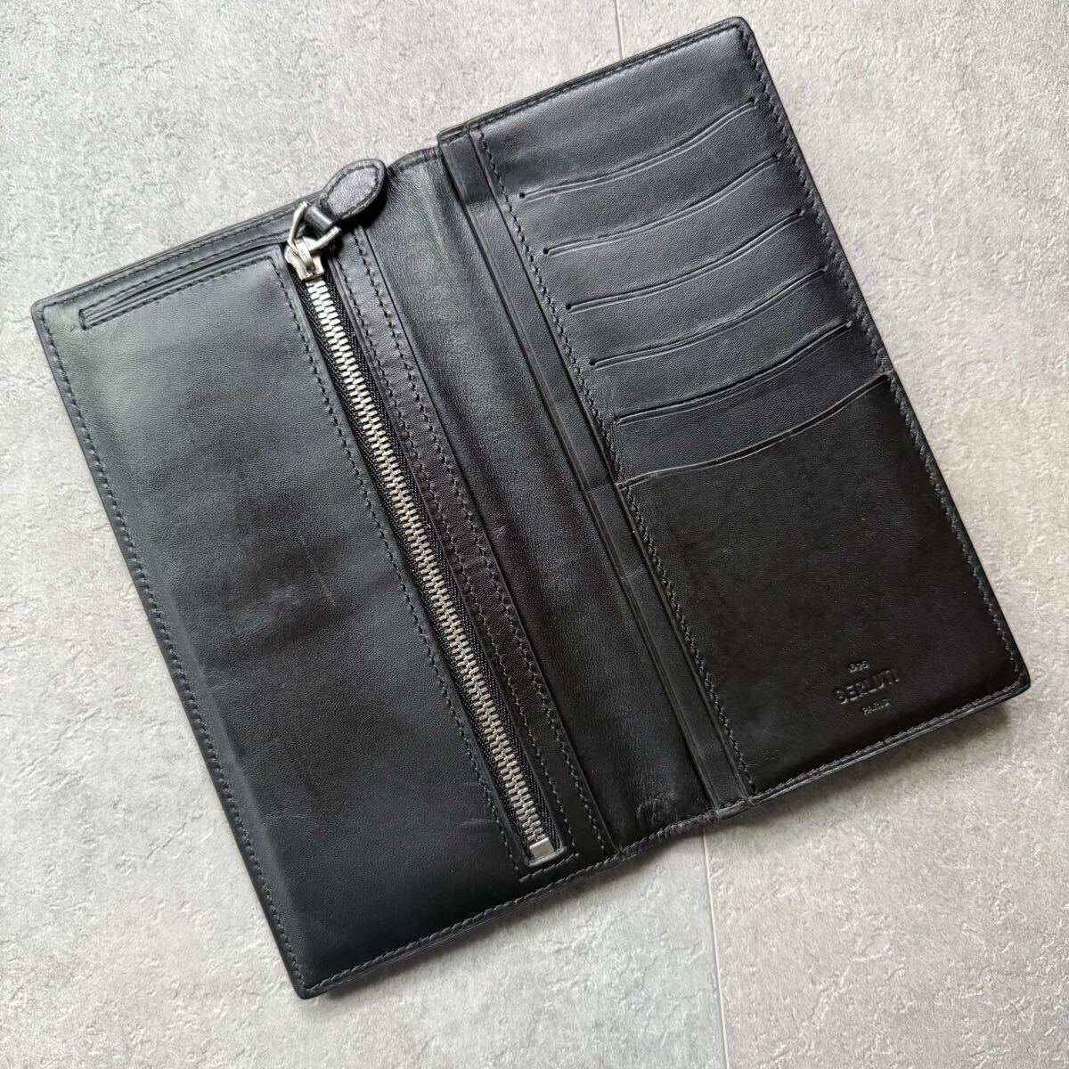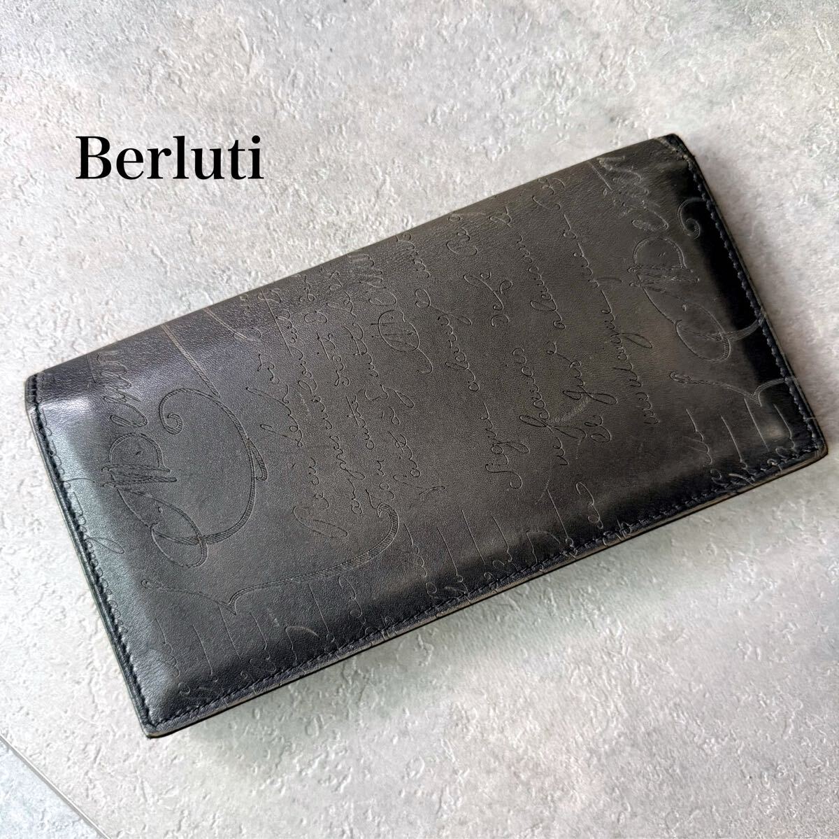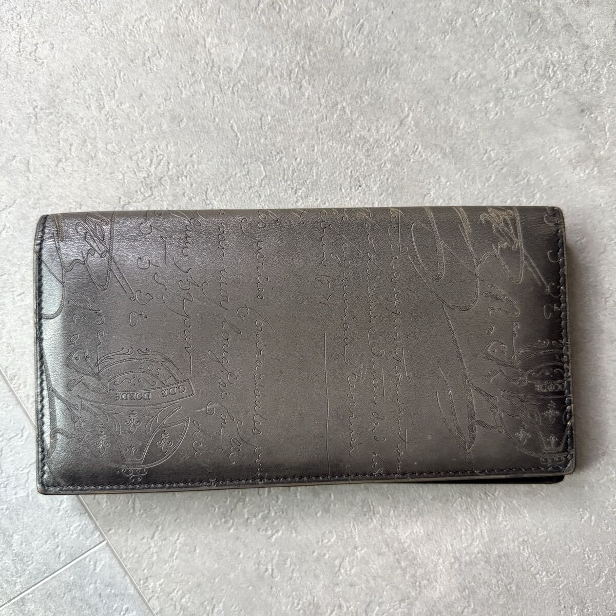 Berluti ベルルッティ カリグラフィー スクリットレザー 二つ折り長財布 コインケース グレー ブラック ロングウォレット