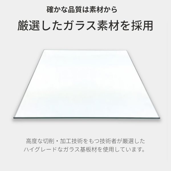 高度な切削・加工技術をもつ技術者が厳選したハイグレードなガラス基板材を採用。