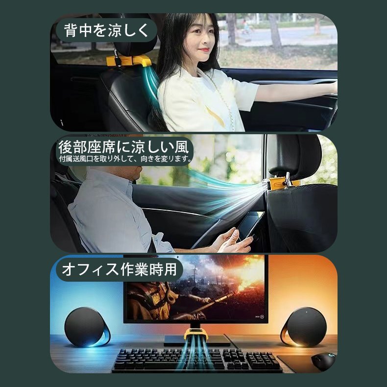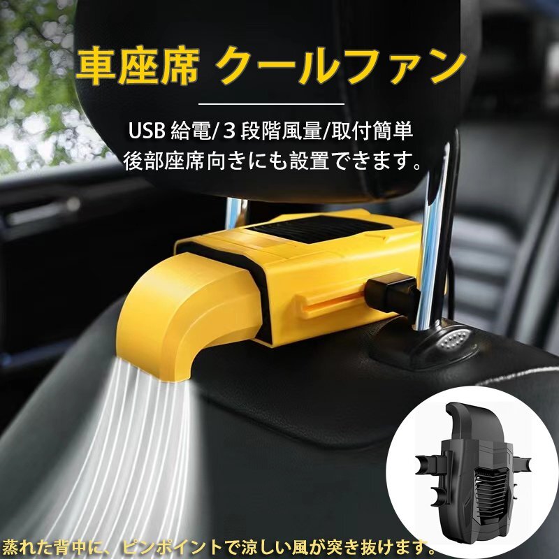 夏場の暑い車座席に設置して、背中に送風できる車用クールファンです