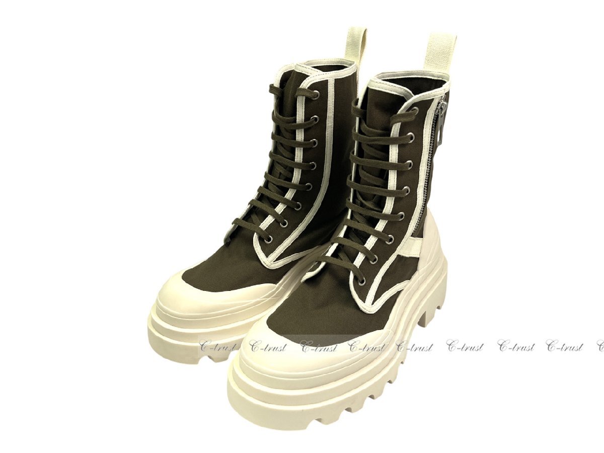 # 新品 未使用 正規店 本物 送料無料 男 男性 MENS メンズ 女 女性 レディース LADIES プレゼント PRESENT イタリア製 ITALY ユニセックス ロゴ LOGO ホワイト 白 WHITE カーキ KHAKI オリーブ OLIVE カーフ CALF キャンバス CANVAS ハイカット ブーツ レースアップ シューズ