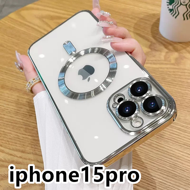 iphone15proケース TPU お洒落 軽量 カバー 無線 磁気 ワイヤレス充電 シルバーのみ