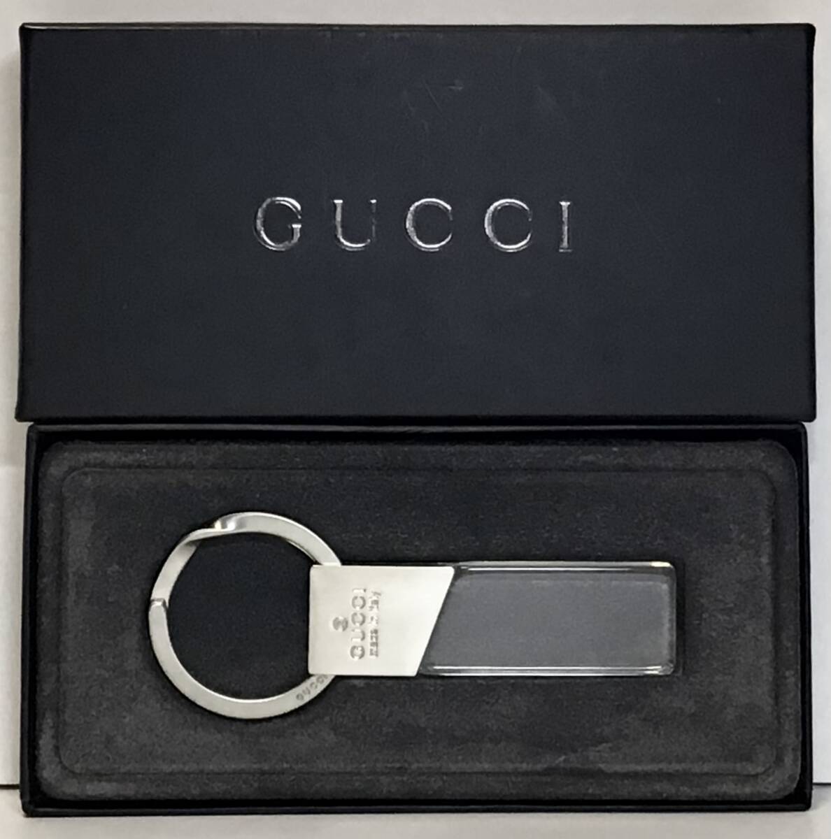 未使用 GUCCI グッチ 90s〜00s オールド キーホルダー キーリング メタル クリアプレート アクセサリー 小物