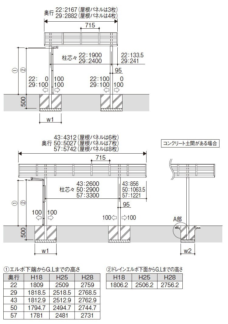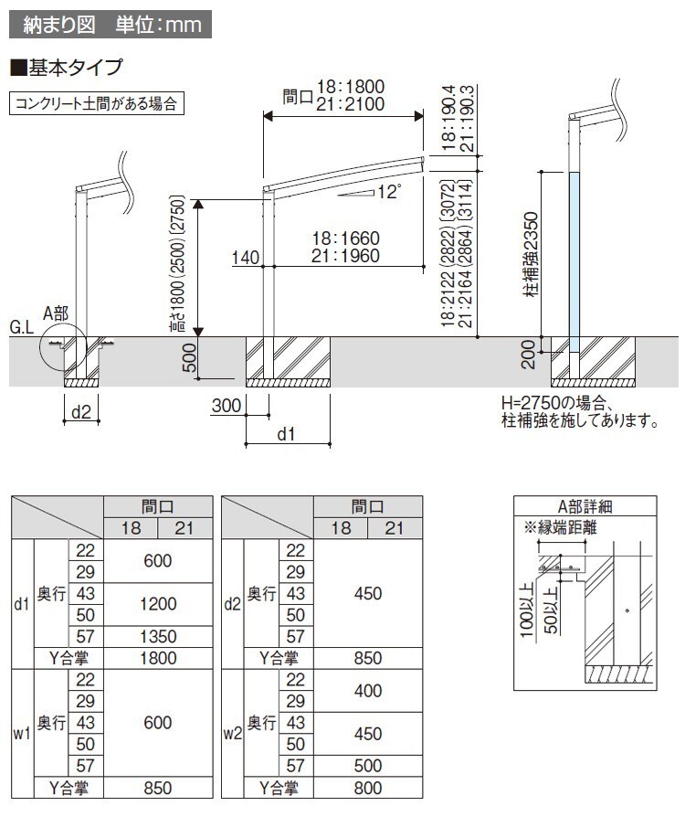 | サイズ | 奥行:2882mm 間口:1800mm 柱高さ:超ロング柱2750mm |