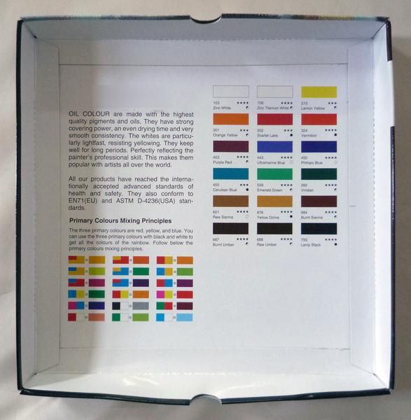油絵の具が1箱:12ml×18色入りです。