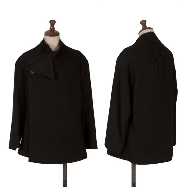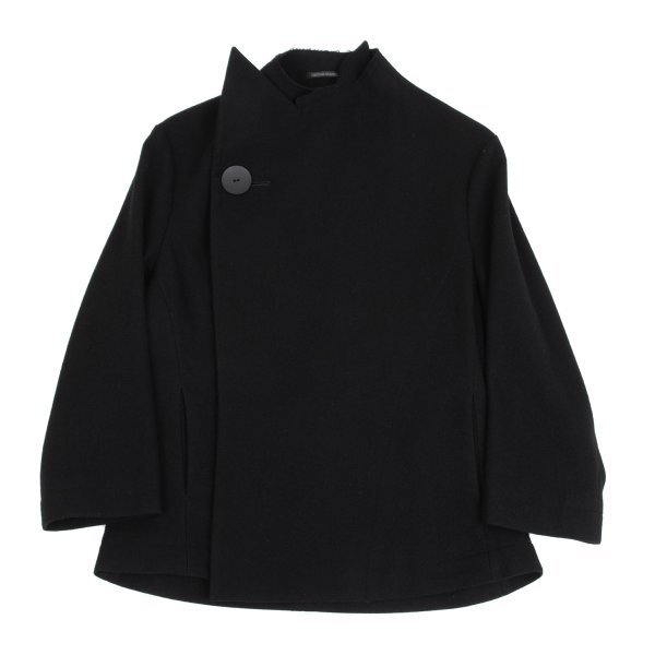 | ヨウジヤマモト ファムYohji Yamamoto FEMME ウールナイロンラペル断ち切りジャケット 黒1 |