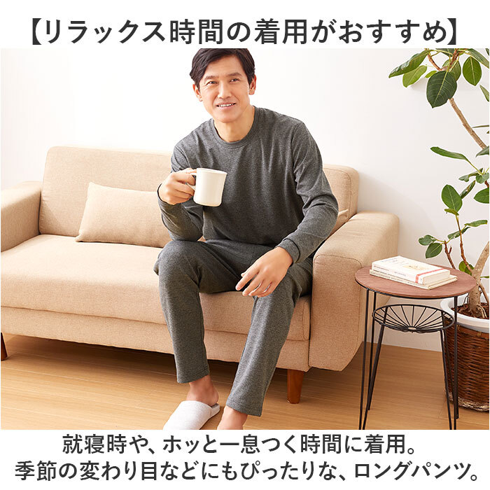 | 商品説明 | ・・【お休みタイムに疲れをリカバリー】 ・着る疲労回復◎アクティブな毎日へ!「リカバリーケアメンズロングパンツ」。 ・【特殊機能繊維で快適な着心地】 ・セラミックス粉末を独自配合。体温を輻射し、血行促進・疲労回復・筋肉のハリ、コリを緩和。 ・【サラリとした質感でストレスフリー】 ・肌当たりが優しい、ポリエステル&コットン混紡素材。チクチク感もなく、睡眠を妨げない◎ ・【リラックス時間の着用がおすすめ】 ・就寝時や、ホッと一息つく時間に着用。季節の変わり目などにもぴったりな、ロングパンツ。 ・【締め付けず、自分サイズにフィット】 ・ウエストゴム紐仕様で調節も自在、軽やかに履けるパンツ。左右にポケット付き。 ・【機能面はそのままに、丸洗いOK】 ・ネットに入れて、洗濯機洗い可能。洗濯しても機能はそのまま、いつも清潔をキープ。 ・(※)洗濯機の弱モードをご使用ください。繊維自体に練り込まれているため、繰り返し洗濯しても機能を発揮します。 ・【頑張っている方へのギフトにも】 ・忙しい時こそ、しっかり休息が必要◎心地よい睡眠をサポートし、目覚めもすっきり。 |