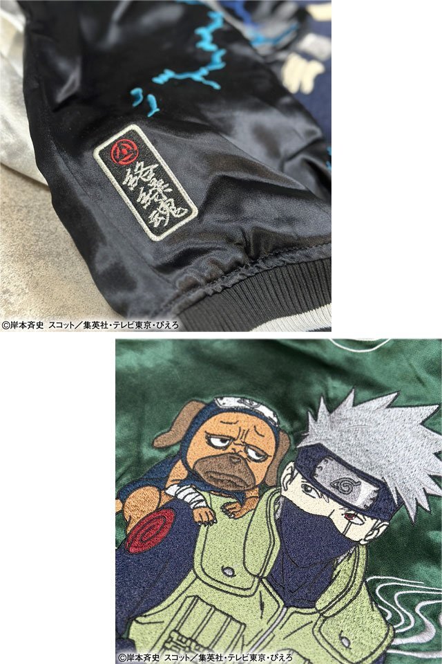 超人気のNARUTO コラボから新作登場!! 絡繰魂コラボ初登場のカカシをALL刺繍!! 雷切をイメージした背景、胸部には写輪眼とはたけ家の家紋を刺繍。 さらにリバーシブル裏面はパックンを乗せたカカシの姿をALL刺繍! カカシ好きにはたまらない一着に仕上げました!!! | ||||||||||||||||||||