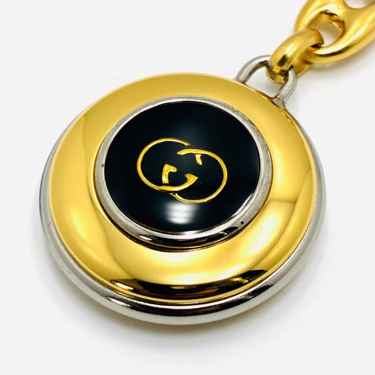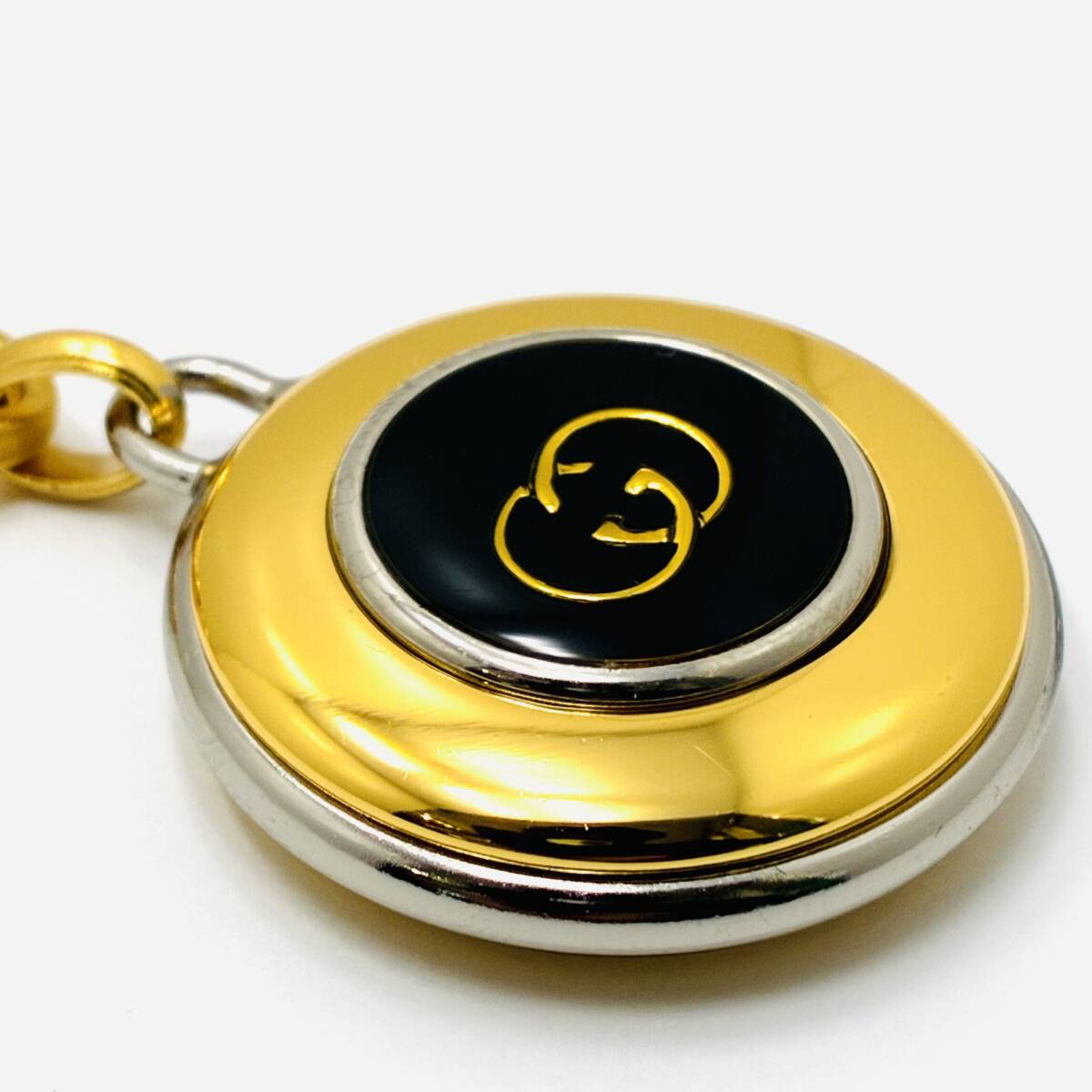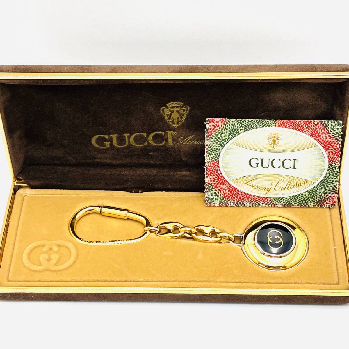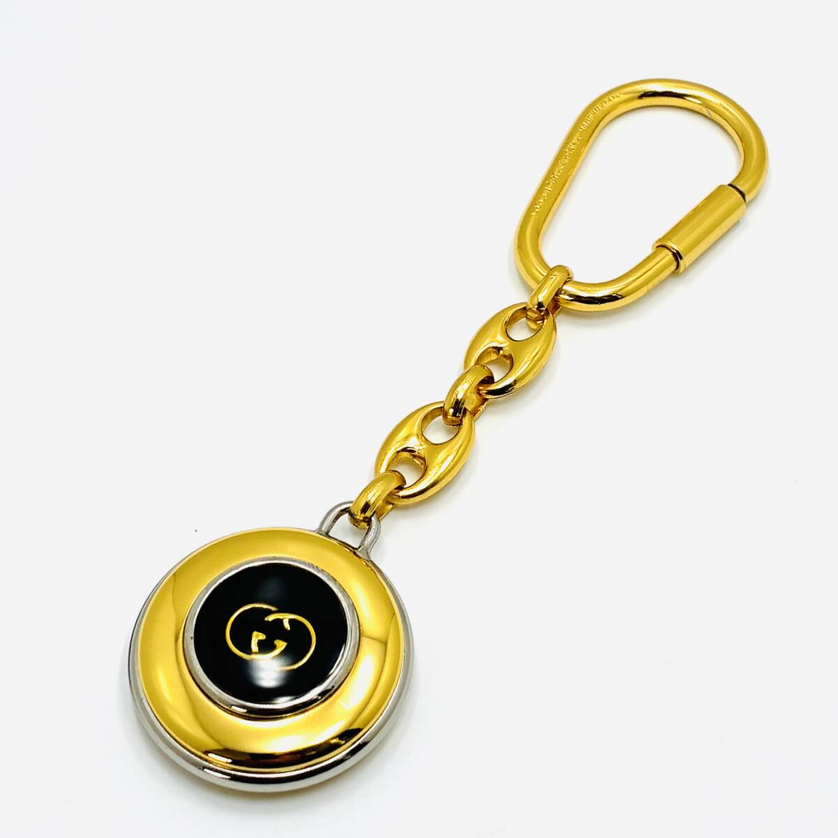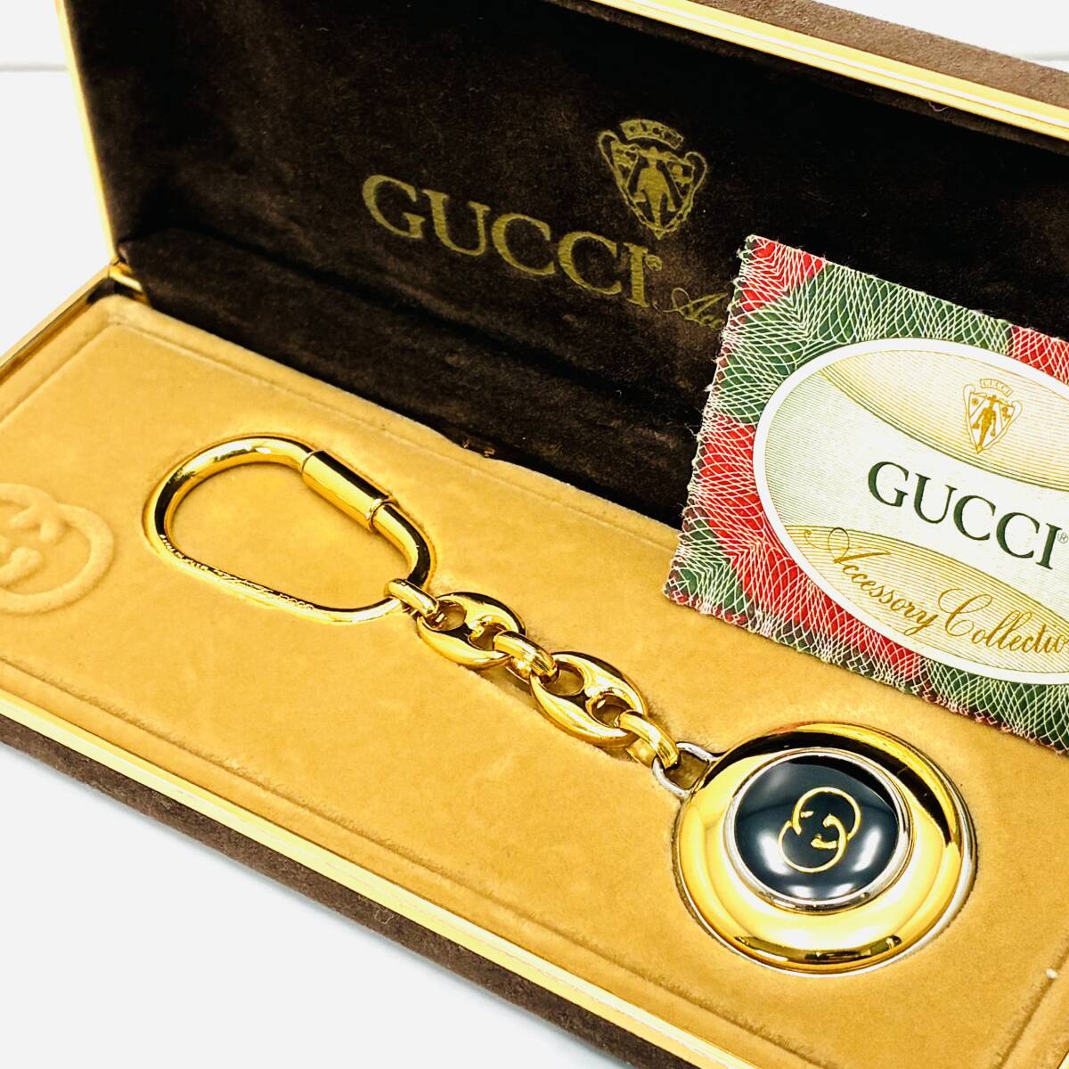 美品 GUCCI グッチ オールドグッチ キーホルダー ゴールド×ブラック ヴィンテージ インターロッキング 男女兼用 ケース付き