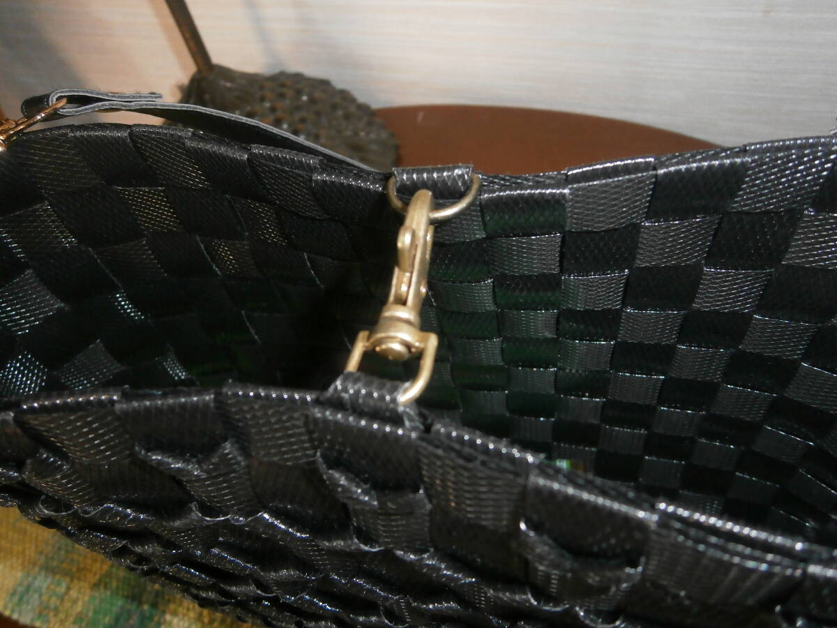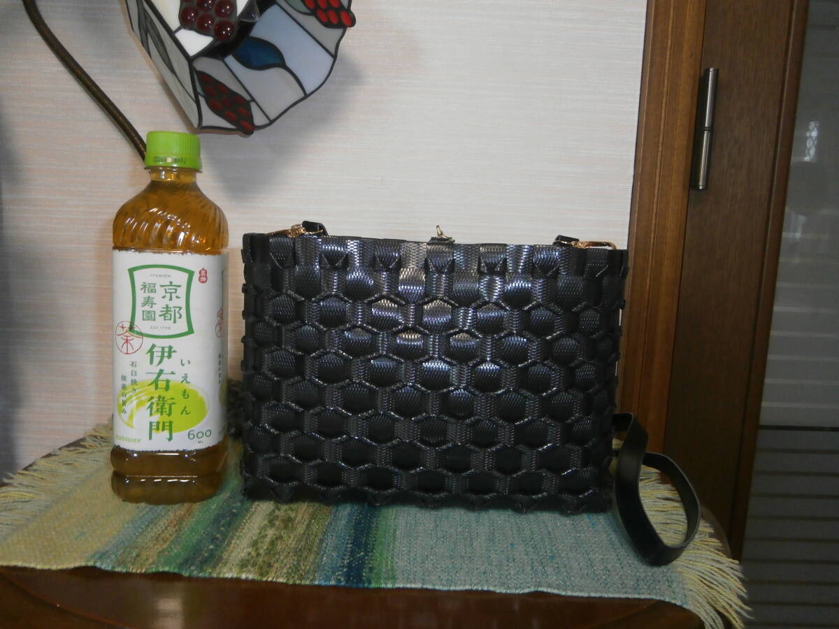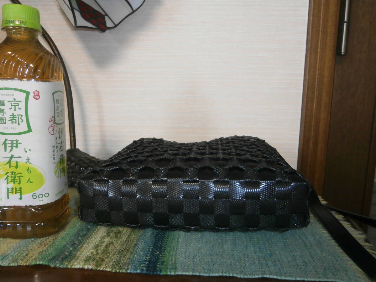 PPバンドポシェット ハンドメイド うろこ編み ブラック 16×22×4.5㎝ 超軽量110g 定形外450円