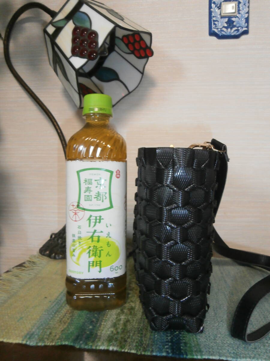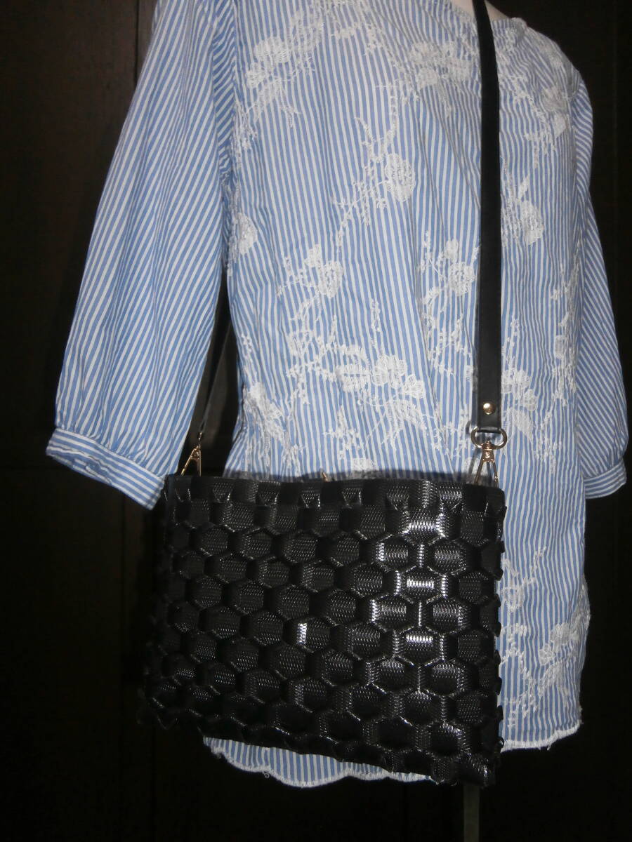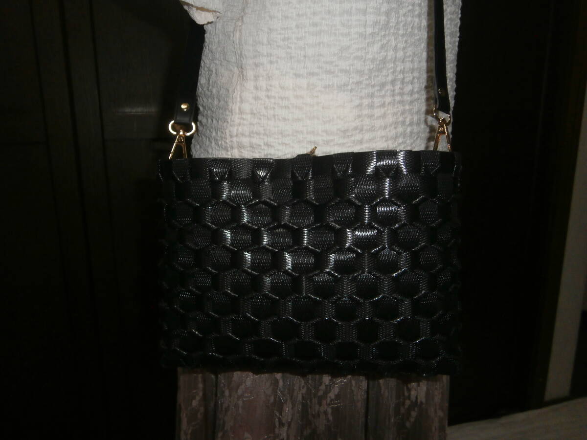 PPバンドポシェット ハンドメイド うろこ編み ブラック 16×22×4.5㎝ 超軽量110g 定形外450円