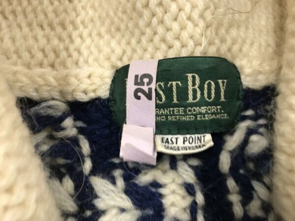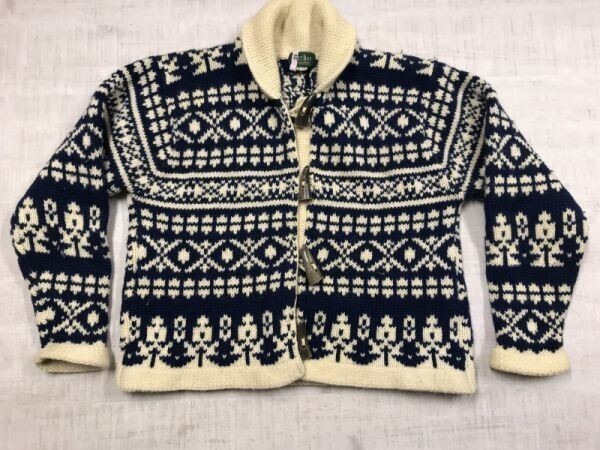 イーストボーイ EASTBOY オールド レトロ カントリー トグルボタン ノルディック雪柄ジャガード ニットジャケット レディース M 紺/白 です。