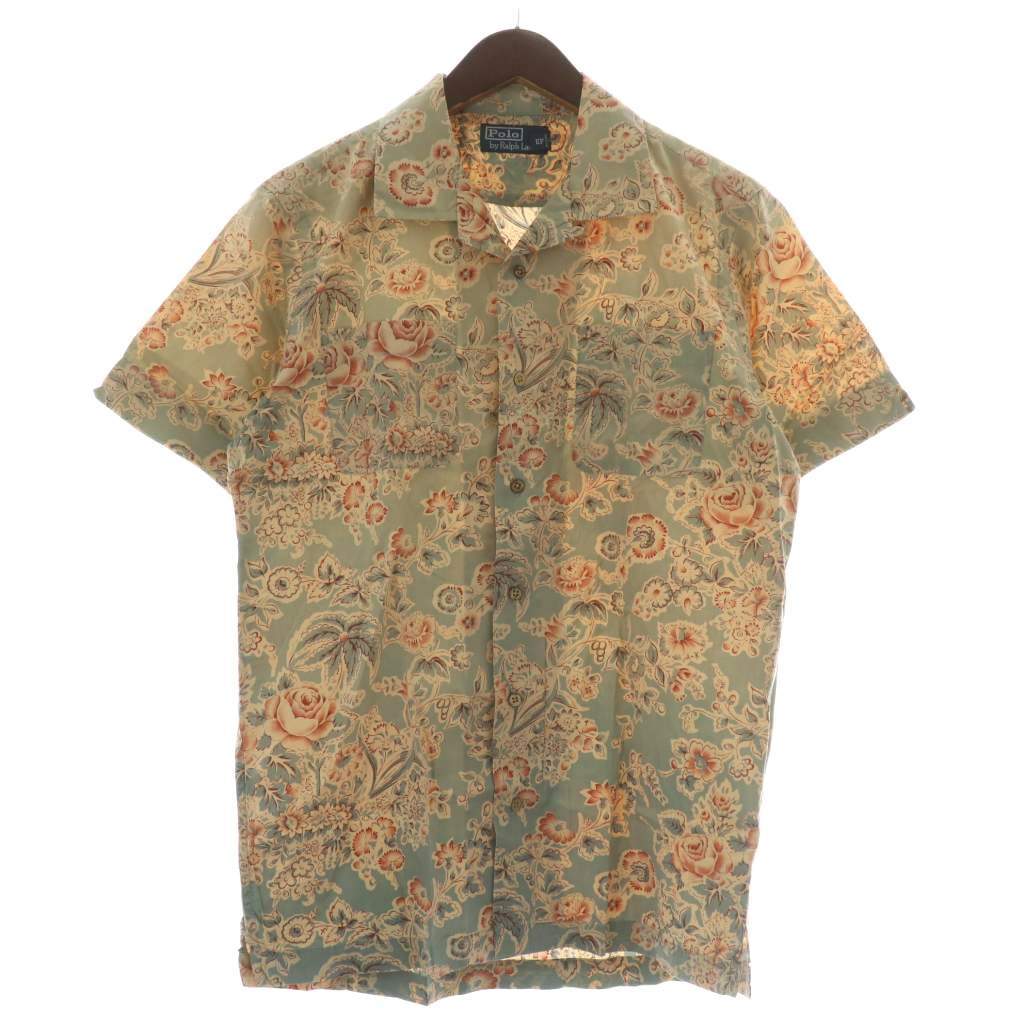 ポロ バイ ラルフローレン Polo by Ralph Lauren アロハシャツ オープンカラー 半袖 グラデーション 花柄 総柄 M グレー ピンク