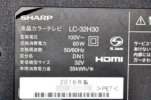 シャープ SHARP 32V型 液晶 テレビ AQUOS LC-32H30 ハイビジョン /B-CASカード・リモコン・HDMIケーブル付 60083Y