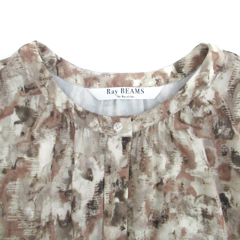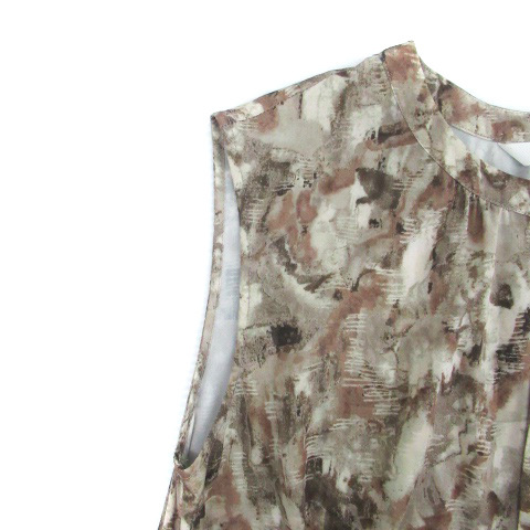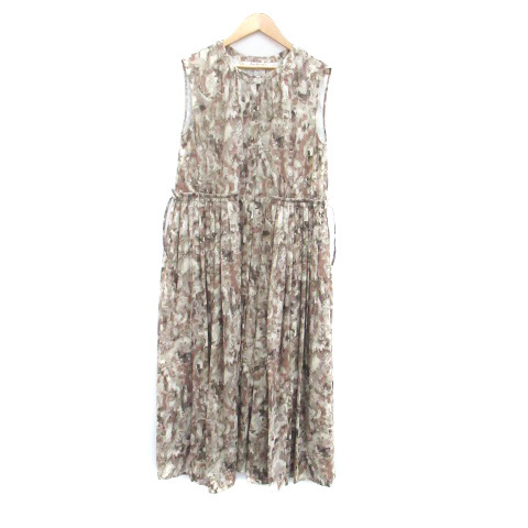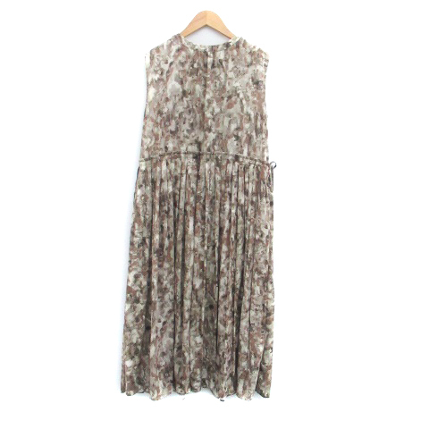 レイビームス Ray Beams ワンピース ラウンドネック ノースリーブ ロング丈 総柄 マルチカラー 茶色 ブラウン /HO41 レディース