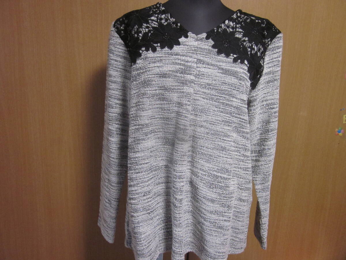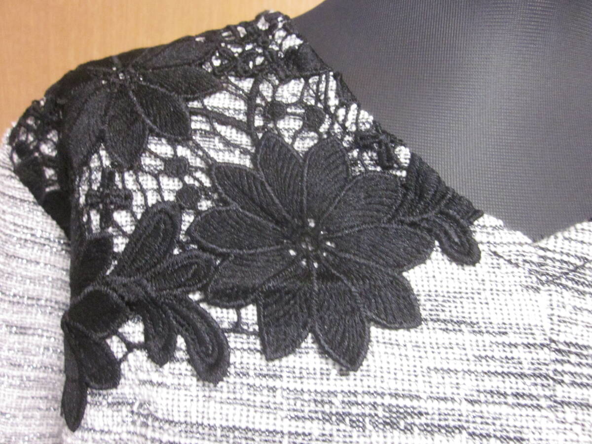 新品未使用の 黒のレース ラメ使いのツイードカットソーです。