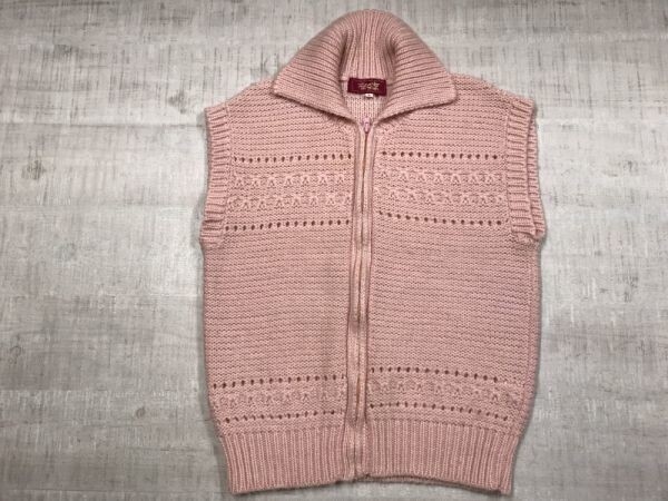 奈奈葉 昭和レトロ モード カントリー 古着 ウール混 ジップアップ ジャガード 襟付き ニットベスト レディース L ピンク