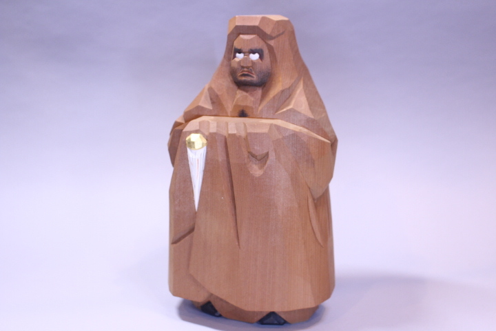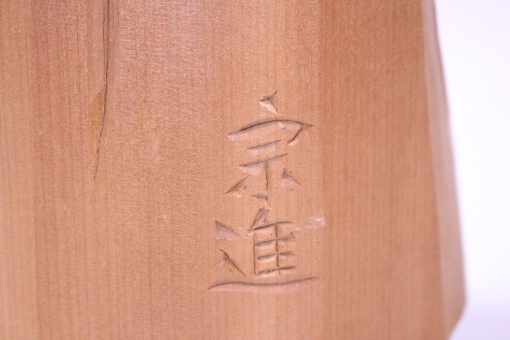 d-7143 奈良人形師 染川宗進作 一刀彫 立達磨 木彫 置物 共箱