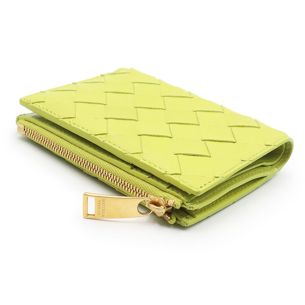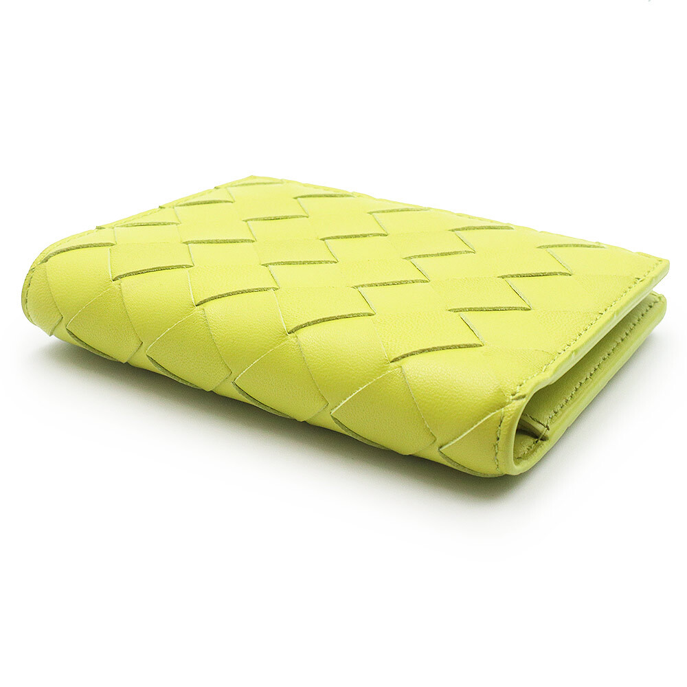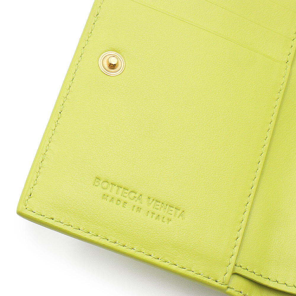 (新品・未使用品)ボッテガヴェネタ BOTTEGA VENETA イントレチャート スモール 二つ折り財布 レザー キウイ ライトグリーン 707601