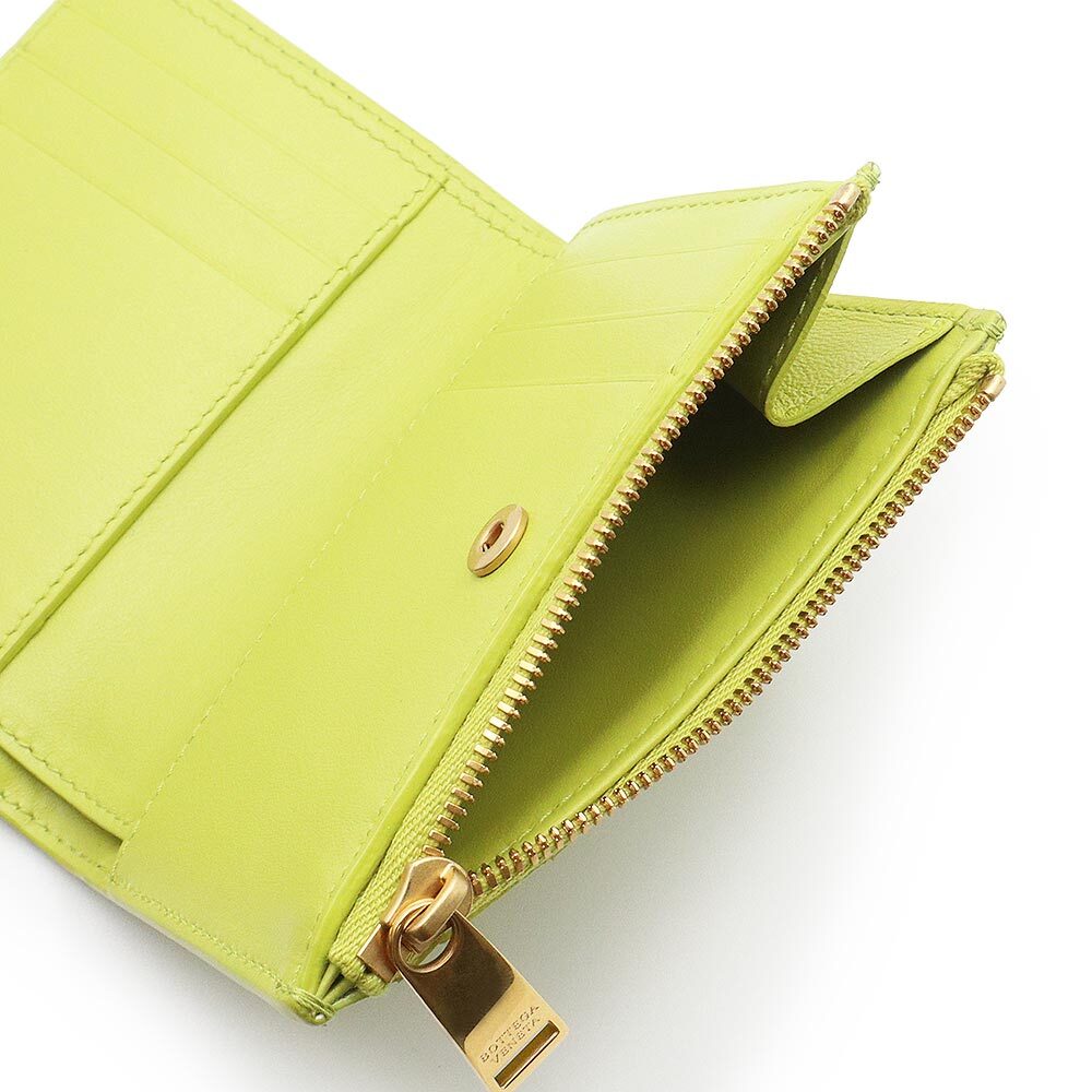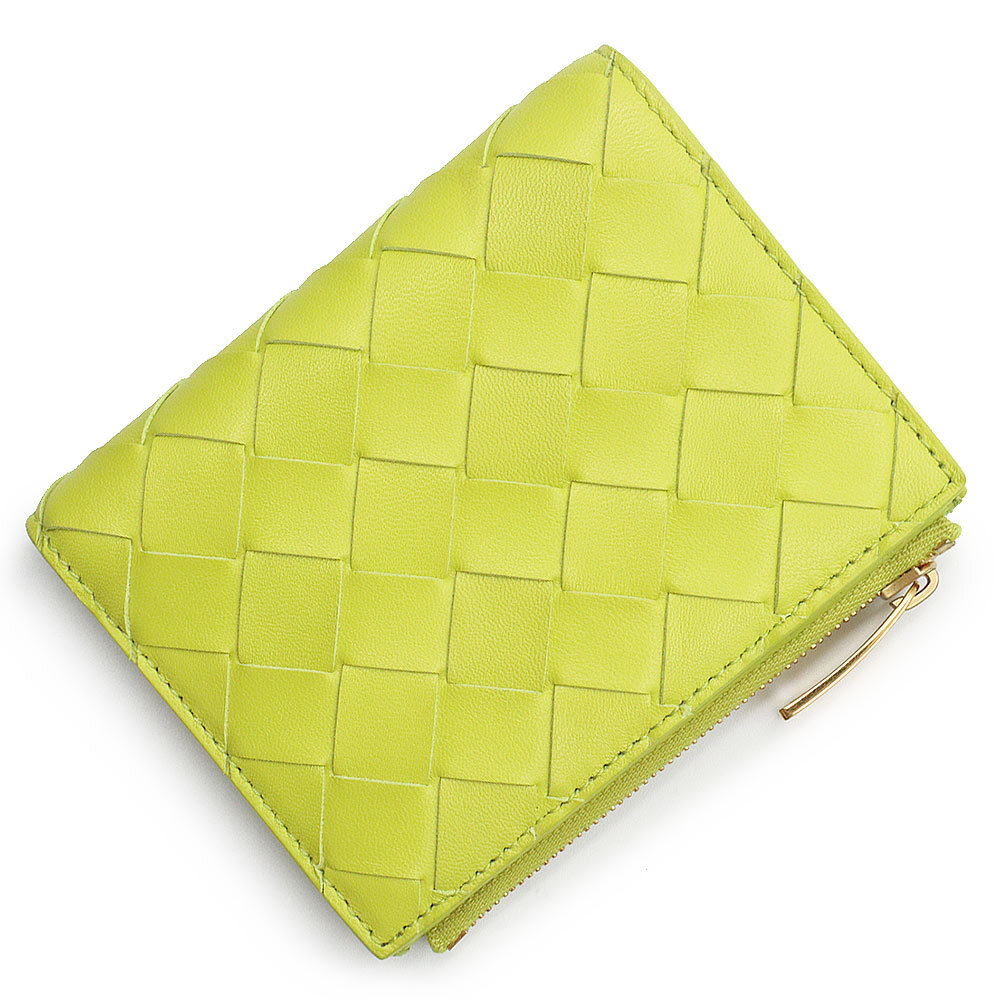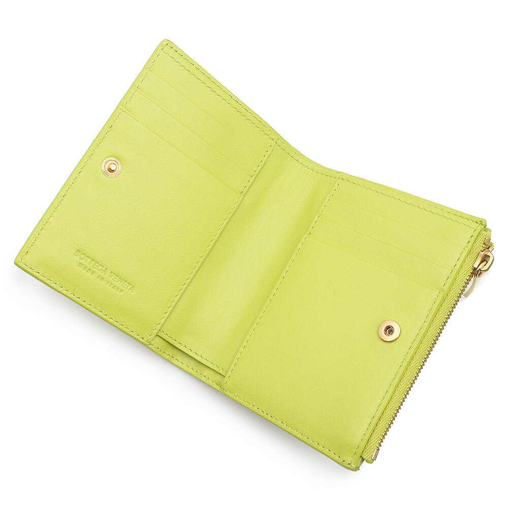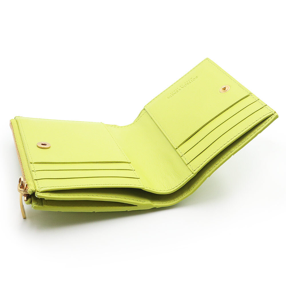 (新品・未使用品)ボッテガヴェネタ BOTTEGA VENETA イントレチャート スモール 二つ折り財布 レザー キウイ ライトグリーン 707601