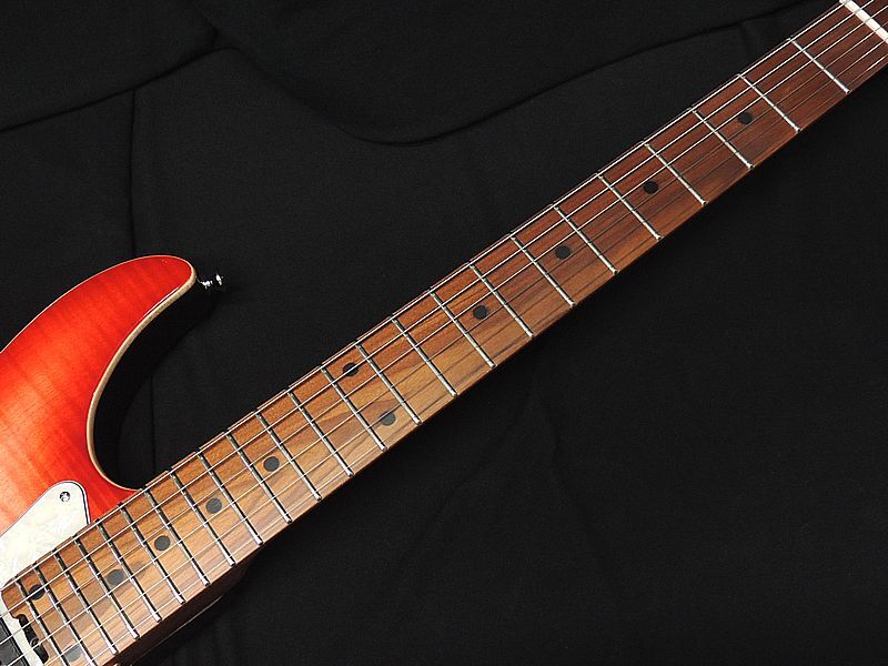 美しい木目のフレームメイプルをトップに配し、アルダーバックやシンクロナイズドトレモロ/ロックペグを搭載した使い勝手の良さが魅力です。