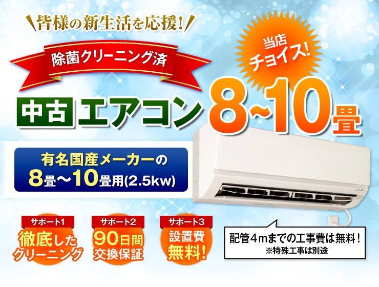 【単品購入不可】家電セットオプション 中古エアコン 8畳~10畳用(2.5kw) 標準取付工事費込 単品購入不可