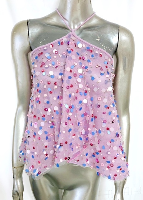 EMPORIO ARMANI tulle ruffle sequin camisole purple summer party
