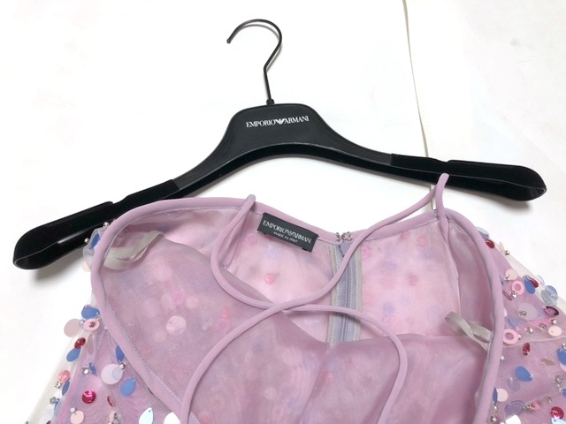 ☆二点落札で送料無料!2A48【未使用/ハンガー付き】エンポリオアルマーニ チュール ラッフル スパンコール キャミソール 38 S-M パープル