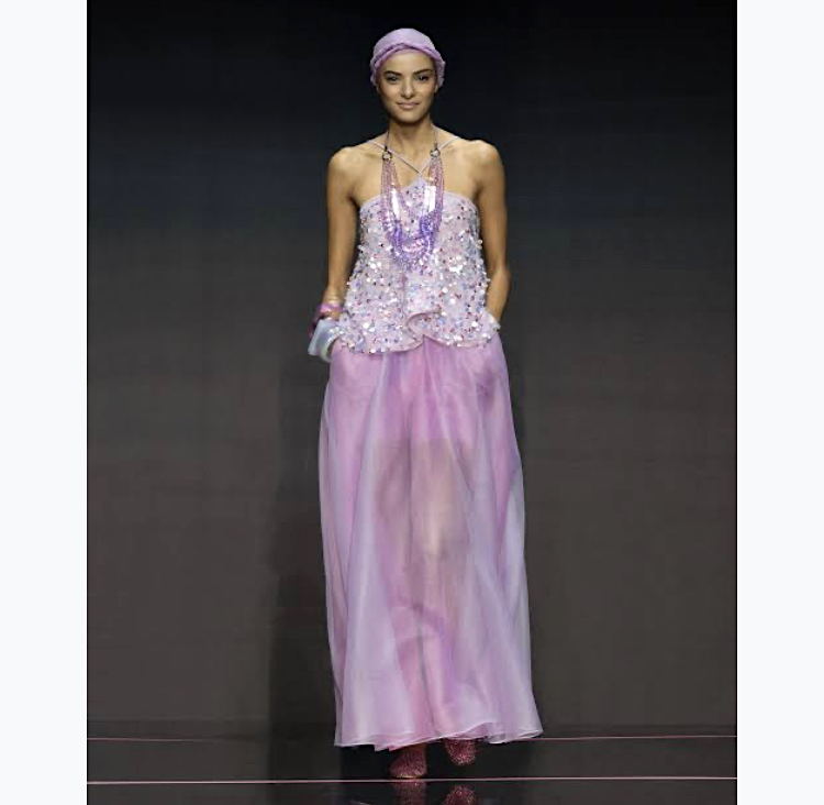 EMPORIO ARMANI チュ 荷叶 亮片 吊衫 紫色 夏季 派  新作 近年モデル ランウェイ着用