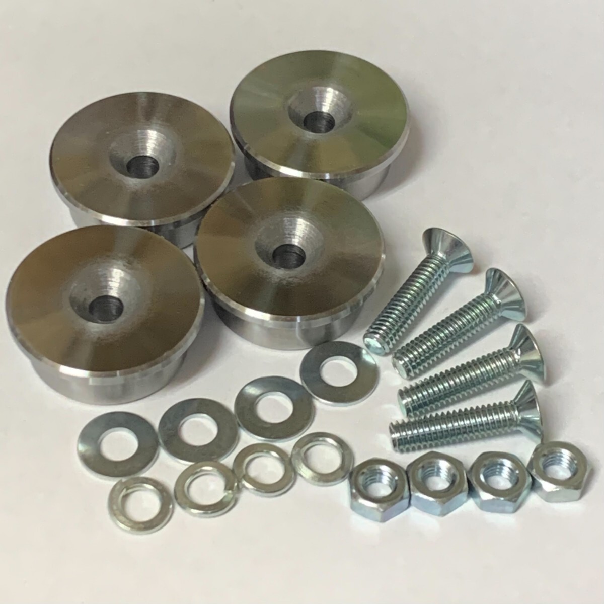 タジマセフホルダー用の丸型円形セフ4個セットの皿ビス、ナット、平ワッシャ、スプリングワッシャ付きセットです。