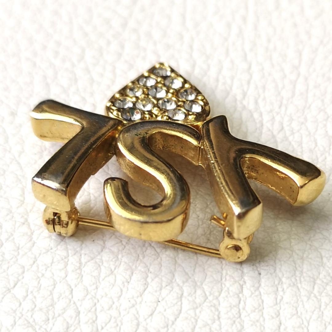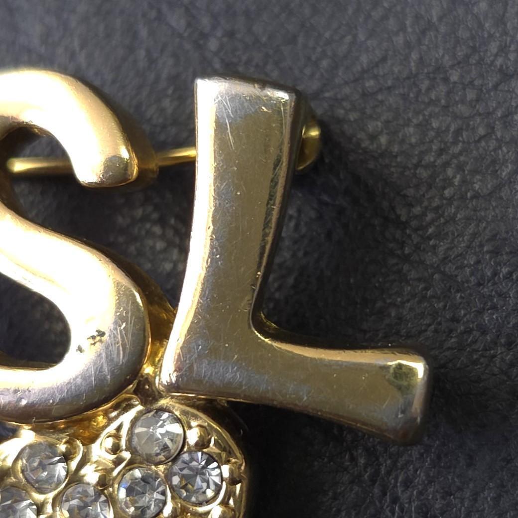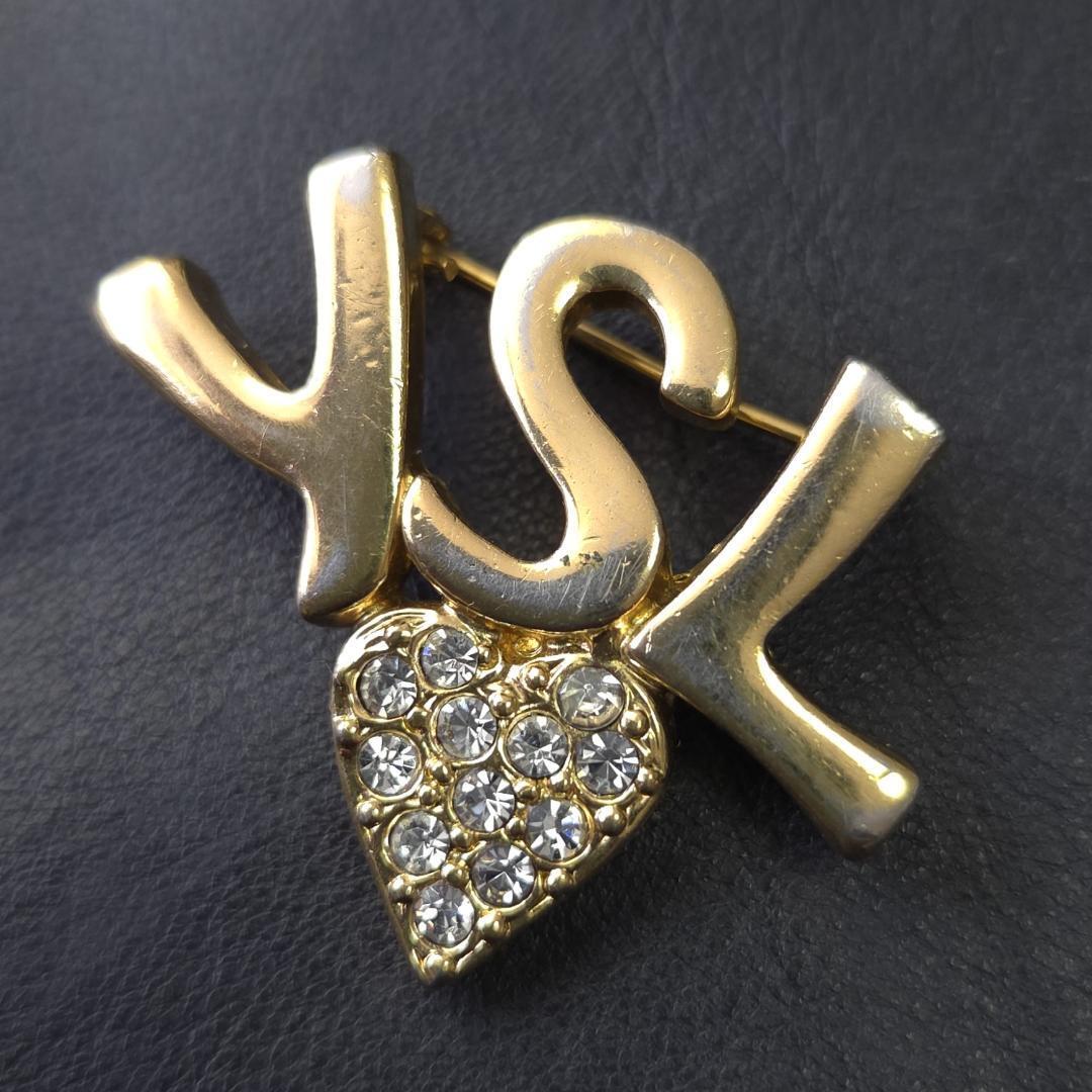 YSL イヴサンローラン ロゴ ハート ブローチ ラインストーン