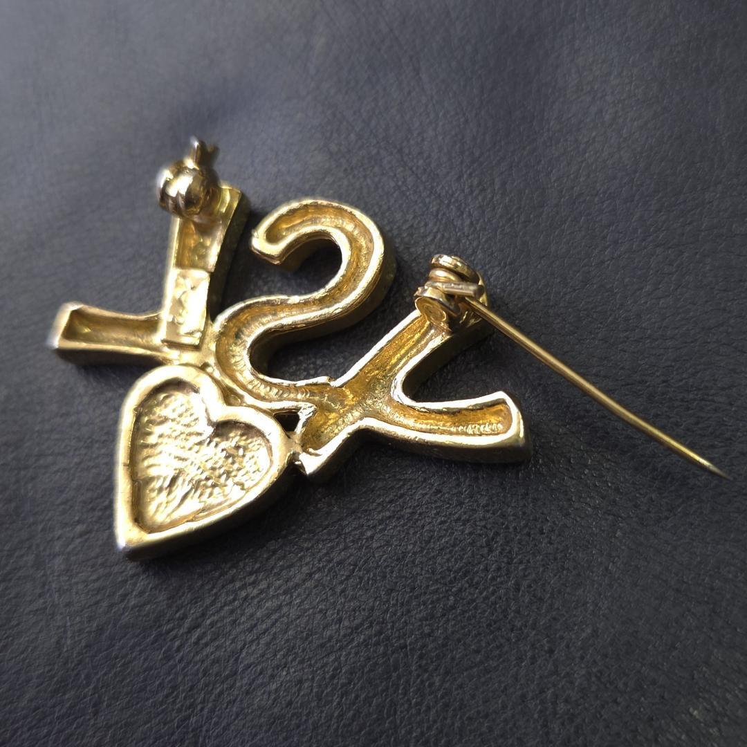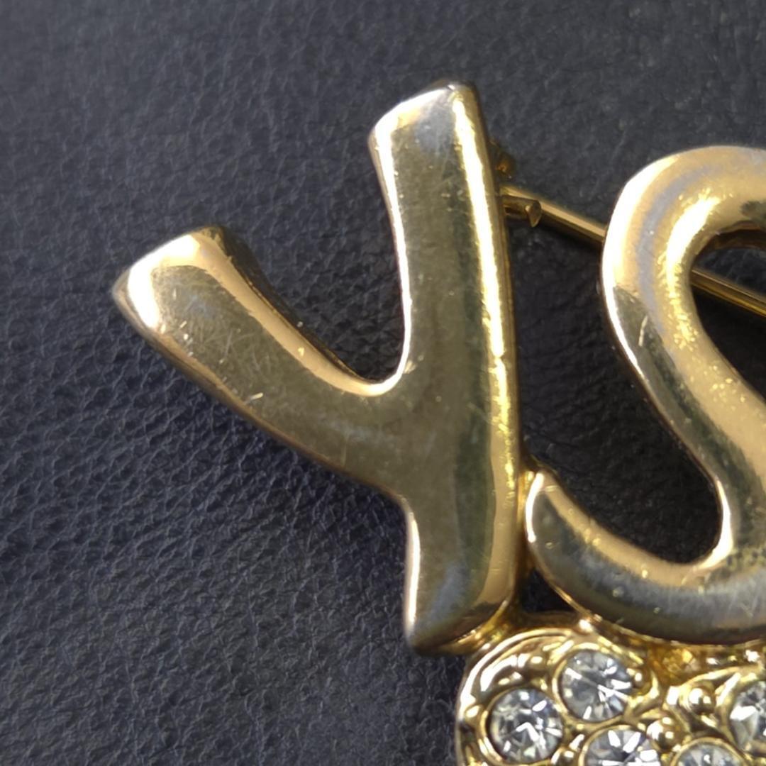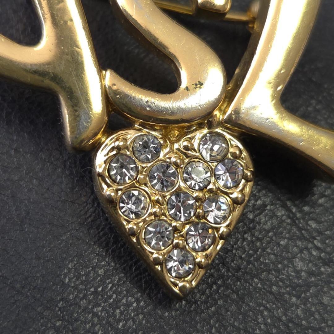 YSL イヴサンローラン ロゴ ハート ブローチ ラインストーン ゴールド色 金色 アクセサリー パーティー 華やか