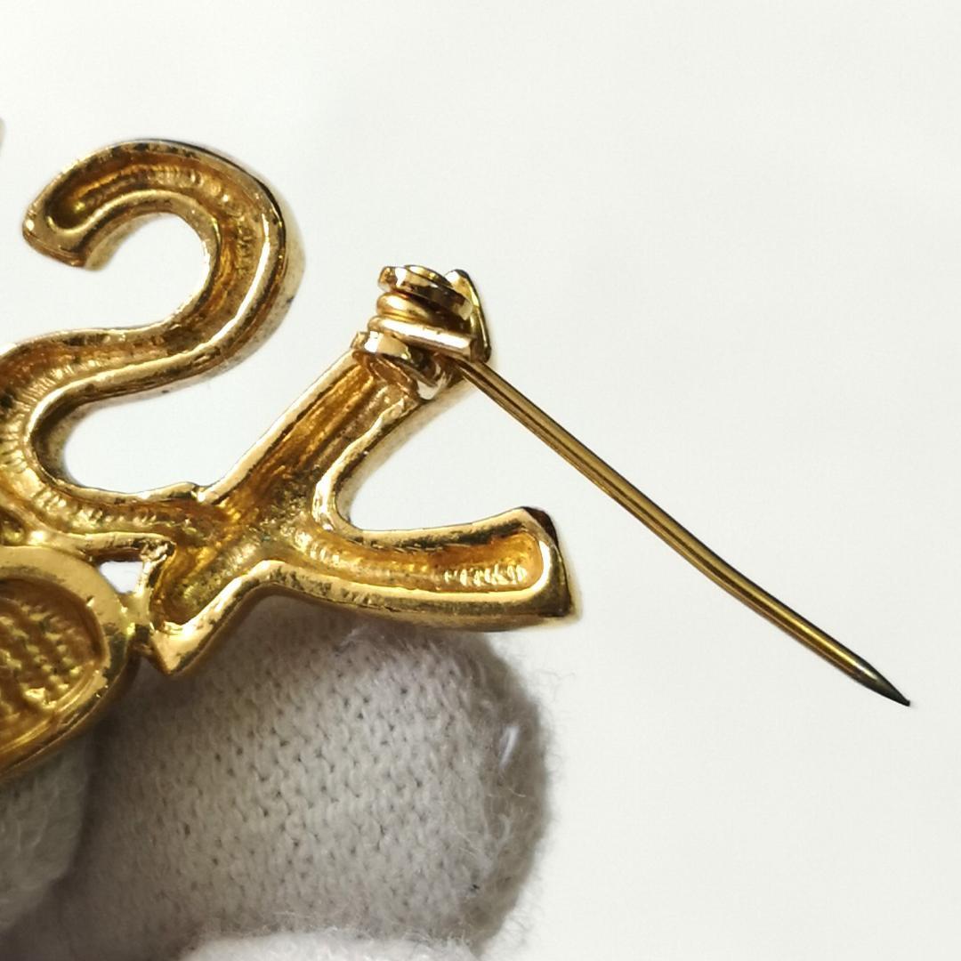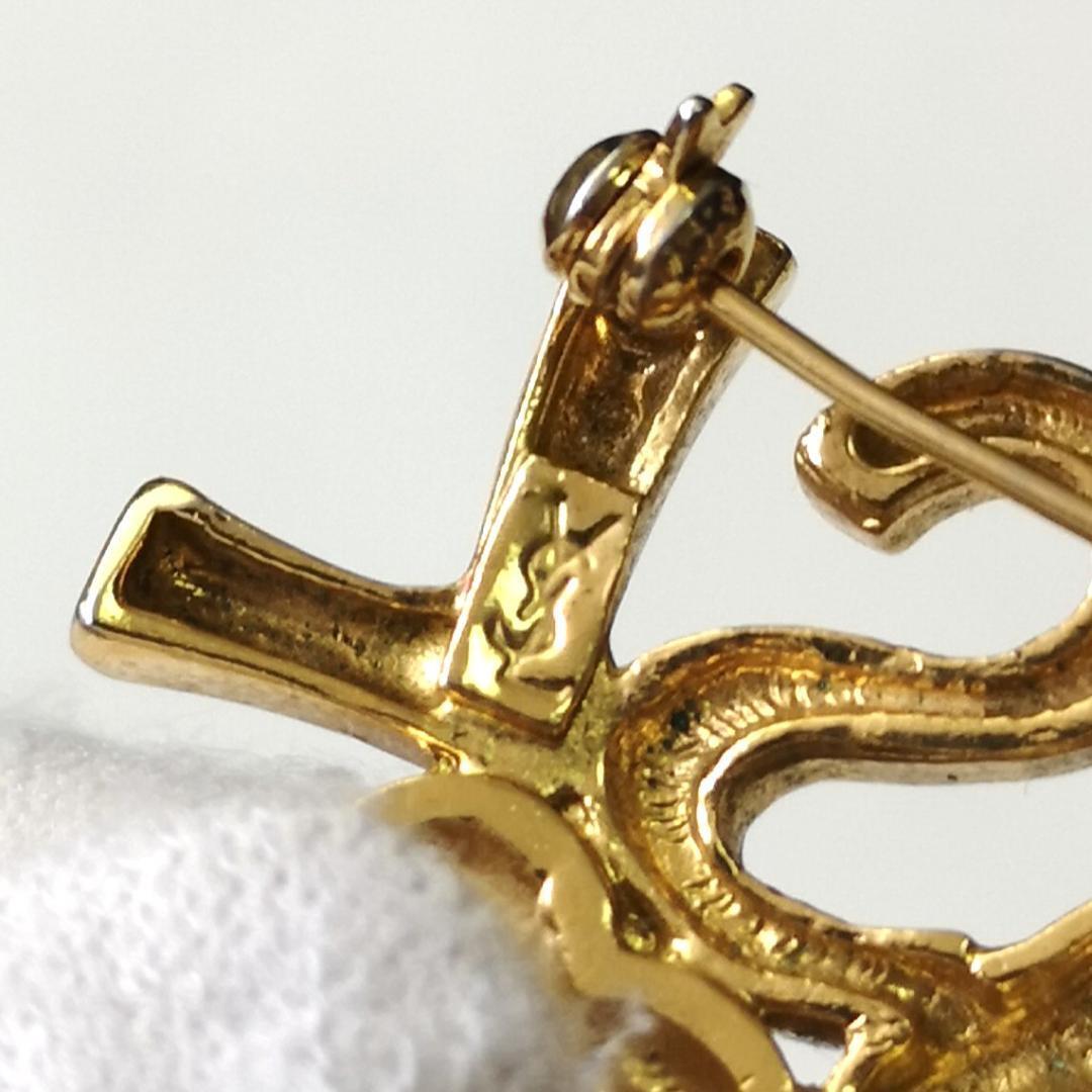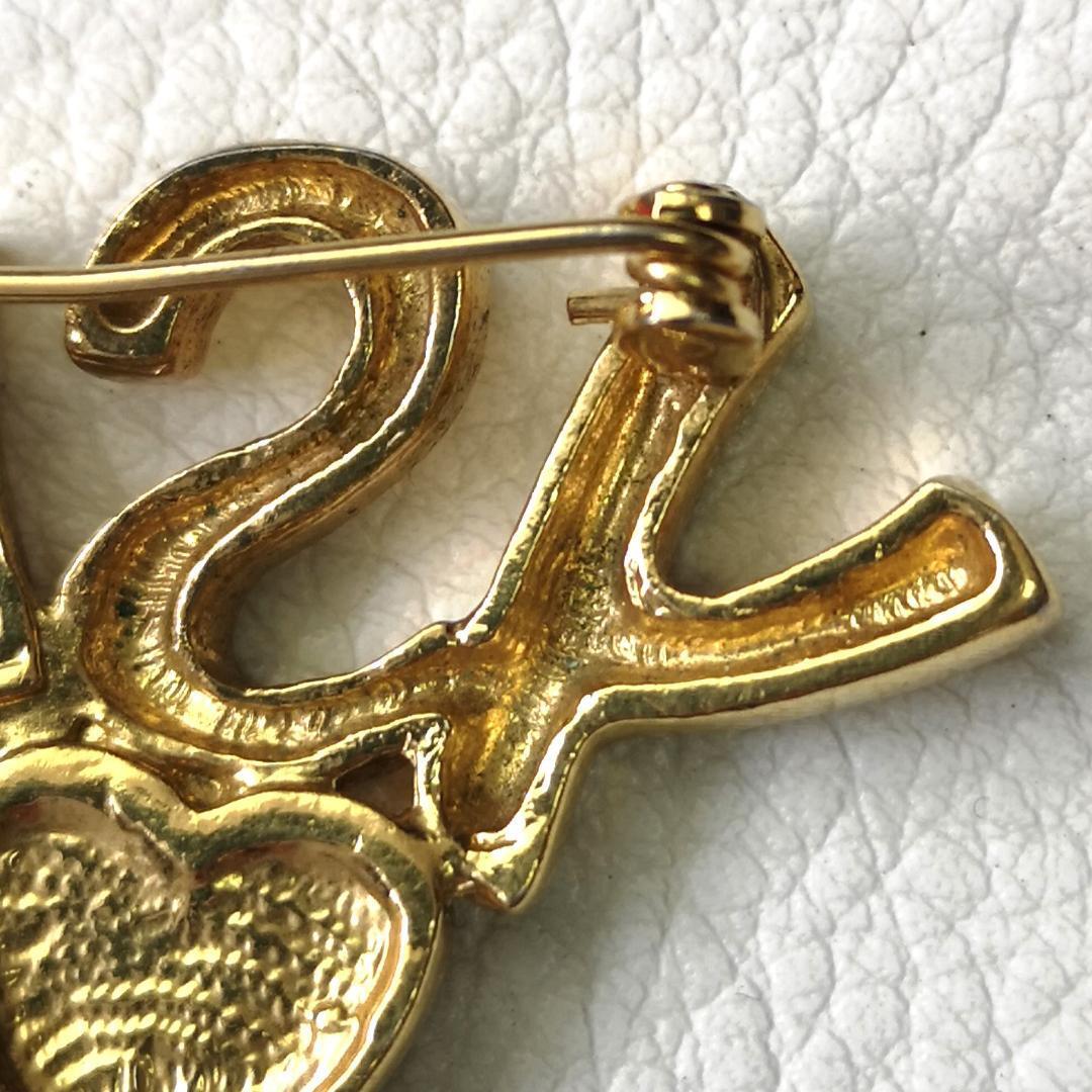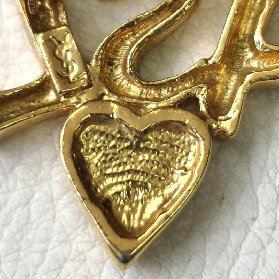 YSL イヴサンローラン ロゴ ハート ブローチ ラインストーン ゴールド色 金色 アクセサリー パーティー 華やか