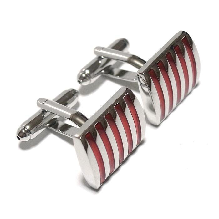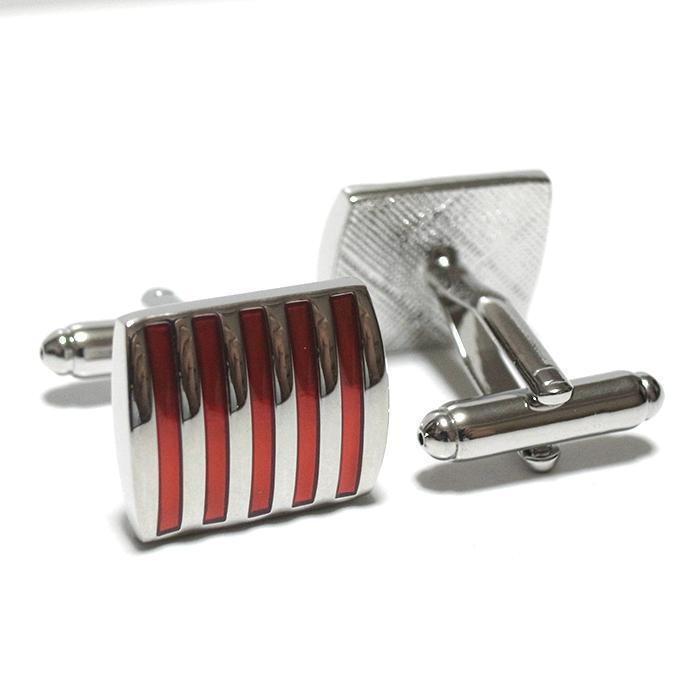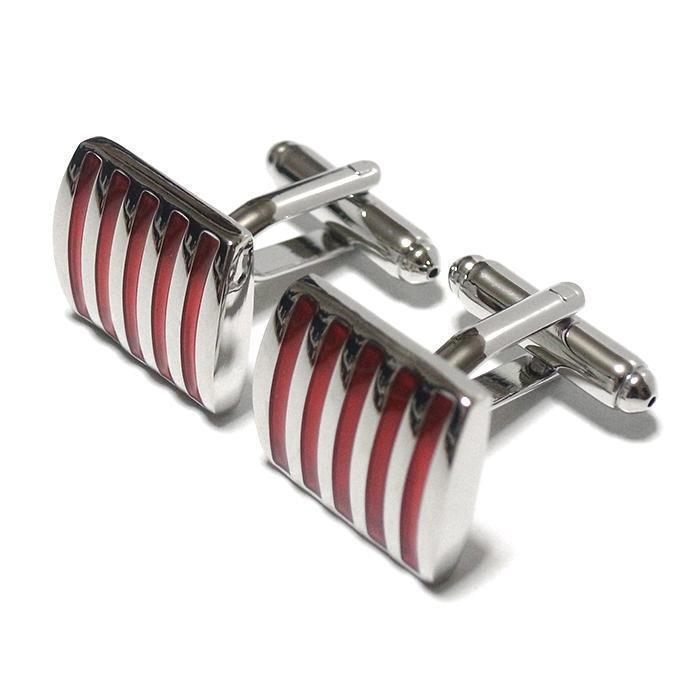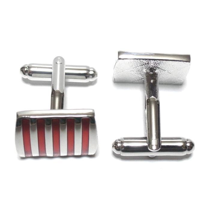 【カフス ボタン/カフリンクス】ストライプ★爽やか★スタイリッシュ★レッド★赤★ワイシャツ★スーツ/cuf-0113-2