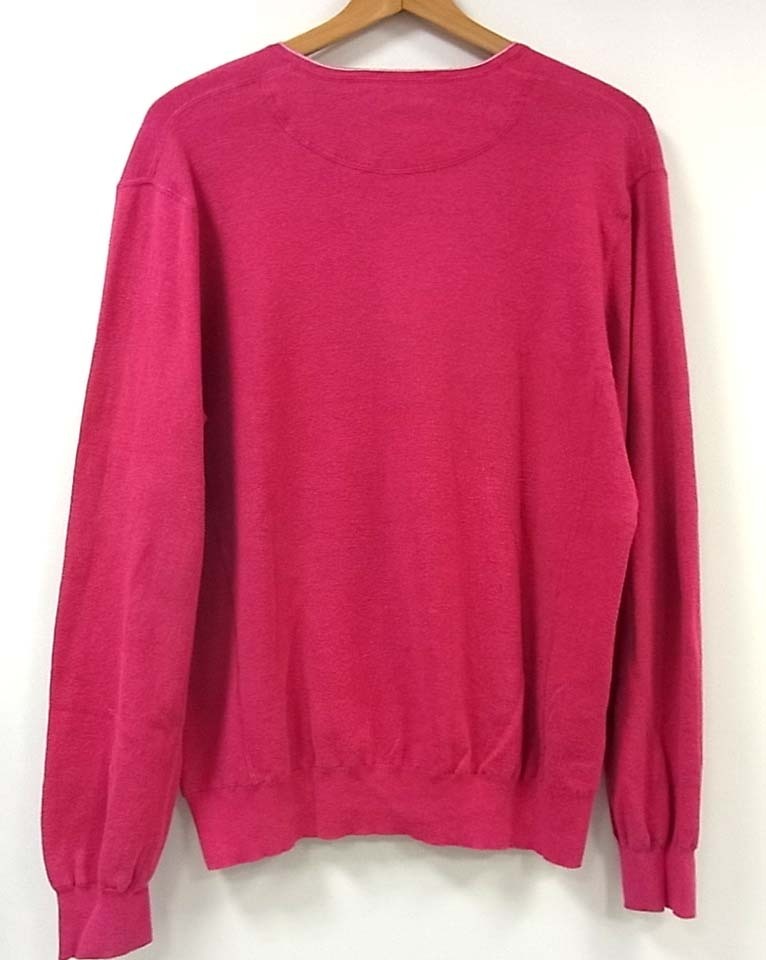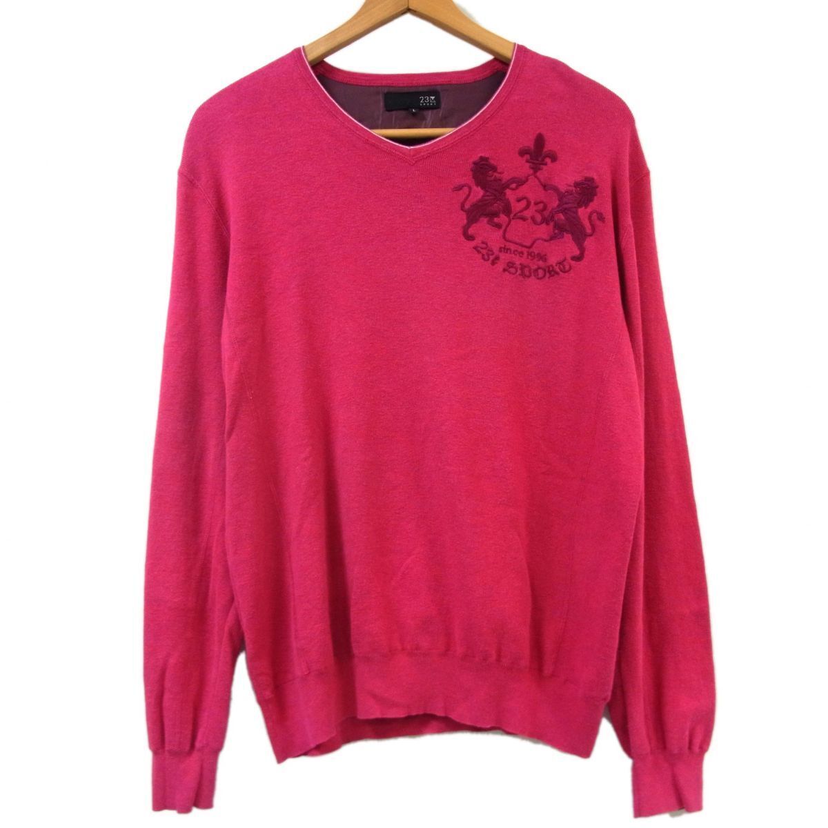 ◇  激レアカラー!   メンズ L!               23区 SPORTS  ■  ニジュウサンク の   ピンクパープル系( 少しパープルがかったピンク系 )   コットン ニット素材が着やすく♪     左胸にある  ワインレッド色の  大きめ 刺繍ロゴが お洒落な♪   メンズ  薄手の ニット素材   Vネック  セーター になります。