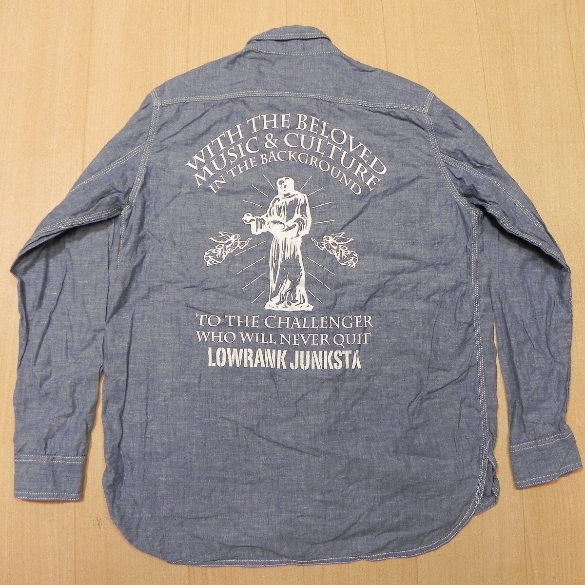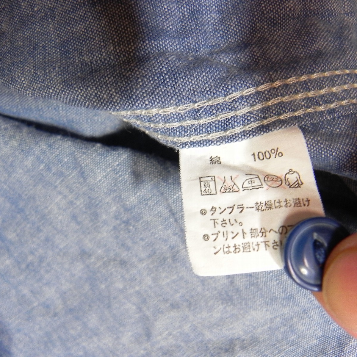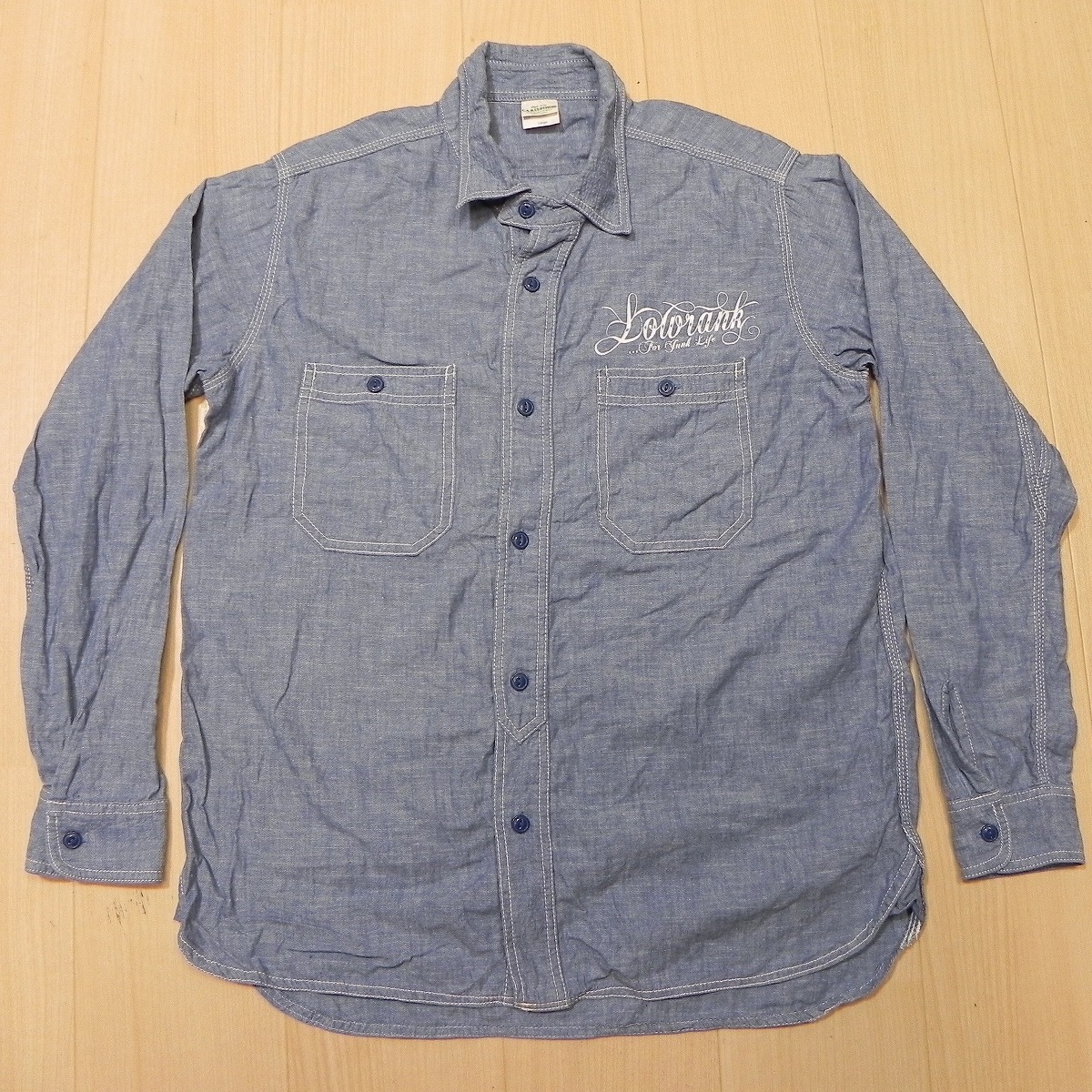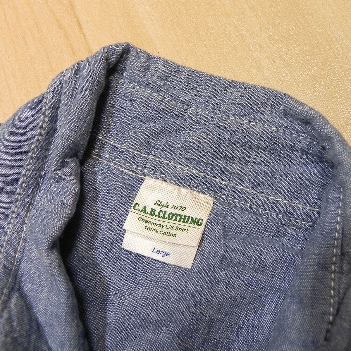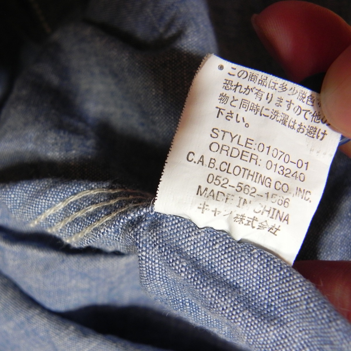 ★ CAB CLOTHING プリント入り シャンブレーシャツ ワークシャツ L チンスト キャブクロージング 古着 ★a