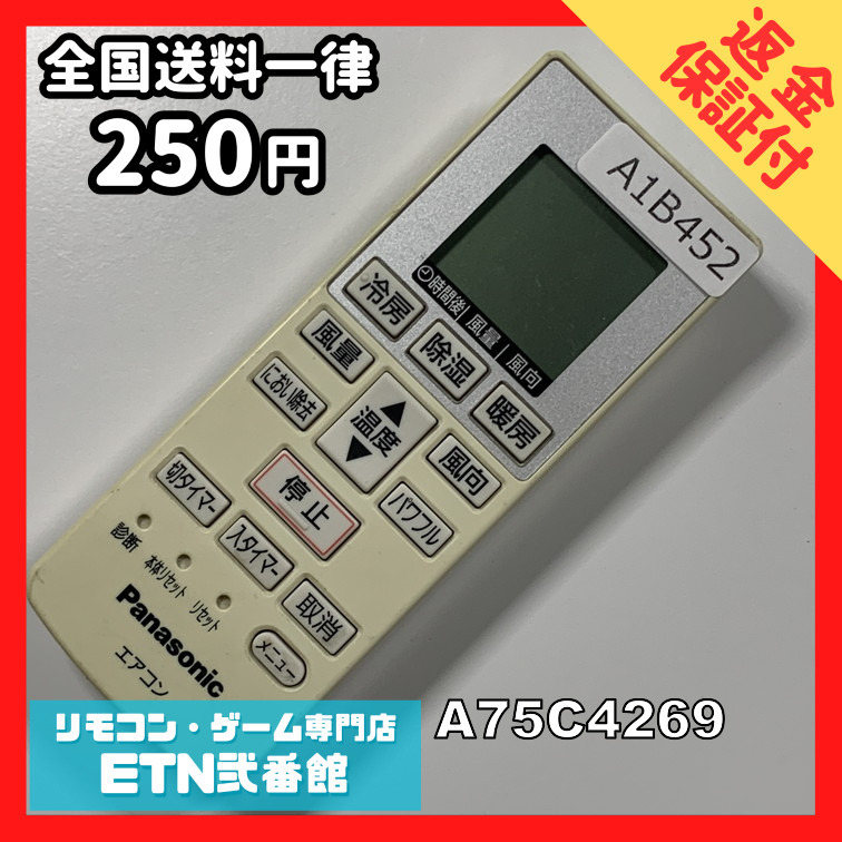 A1B452 【送料250円】エアコン リモコン / Panasonic パナソニック A75C4269 冷房 暖房 動作確認済み★即発送★