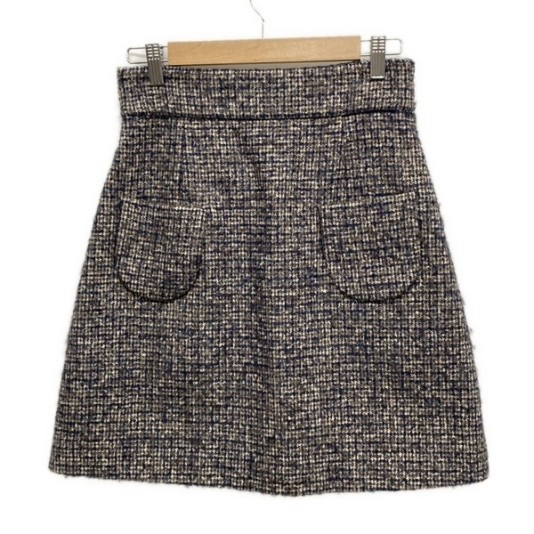 ミュウミュウ miumiu スカート サイズ40 M - ベージュ×ネイビー レディース ひざ丈/ツイード ボトムス