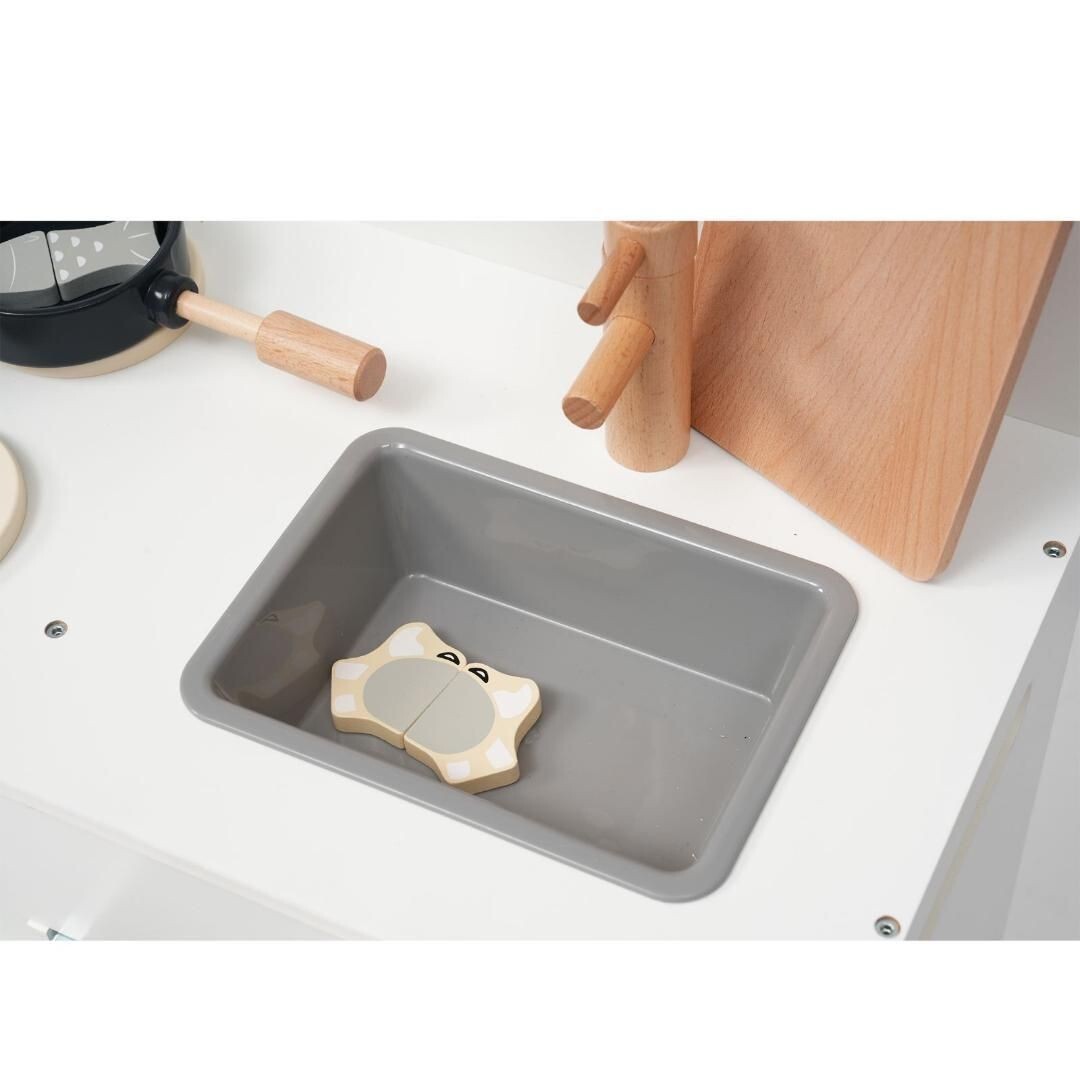 ◆ 01 蛇口&シンクくるくる回して遊べる蛇口とぴったりサイズのシンクがセットになります。食材を洗って、遊びの中からきれいにする意識を生みます。