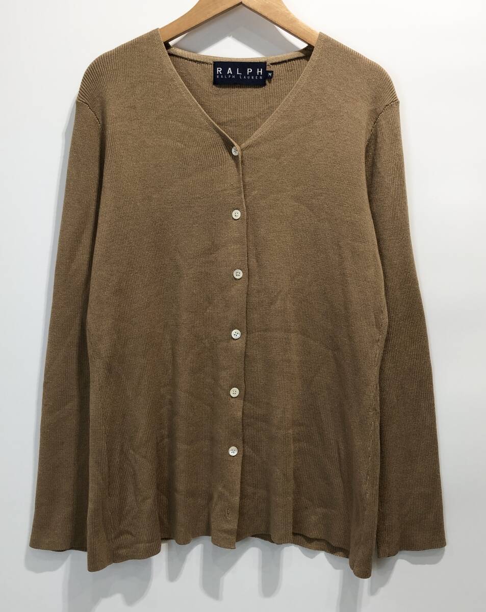 RALPH LAUREN シルク×カシミヤ ニット カーディガン ブラウン RL HA SS 2504 023 ラルフローレン 古着 ヴィンテージ SIZE:M■0918K② |