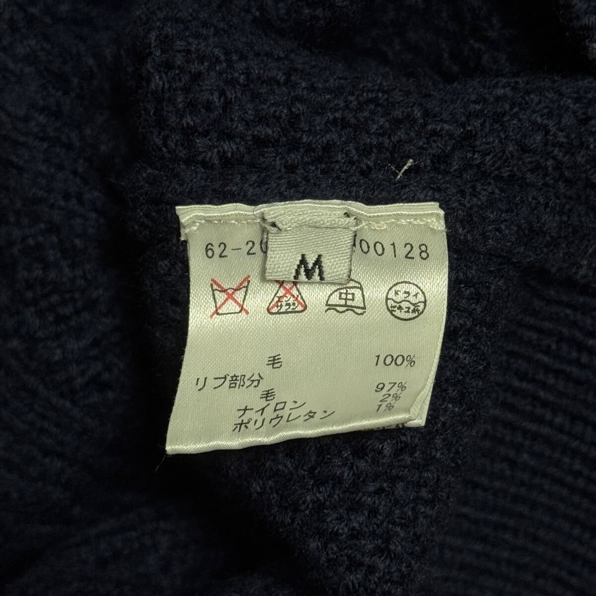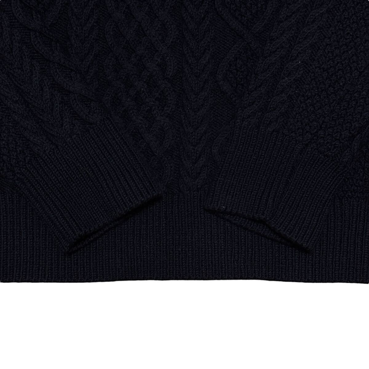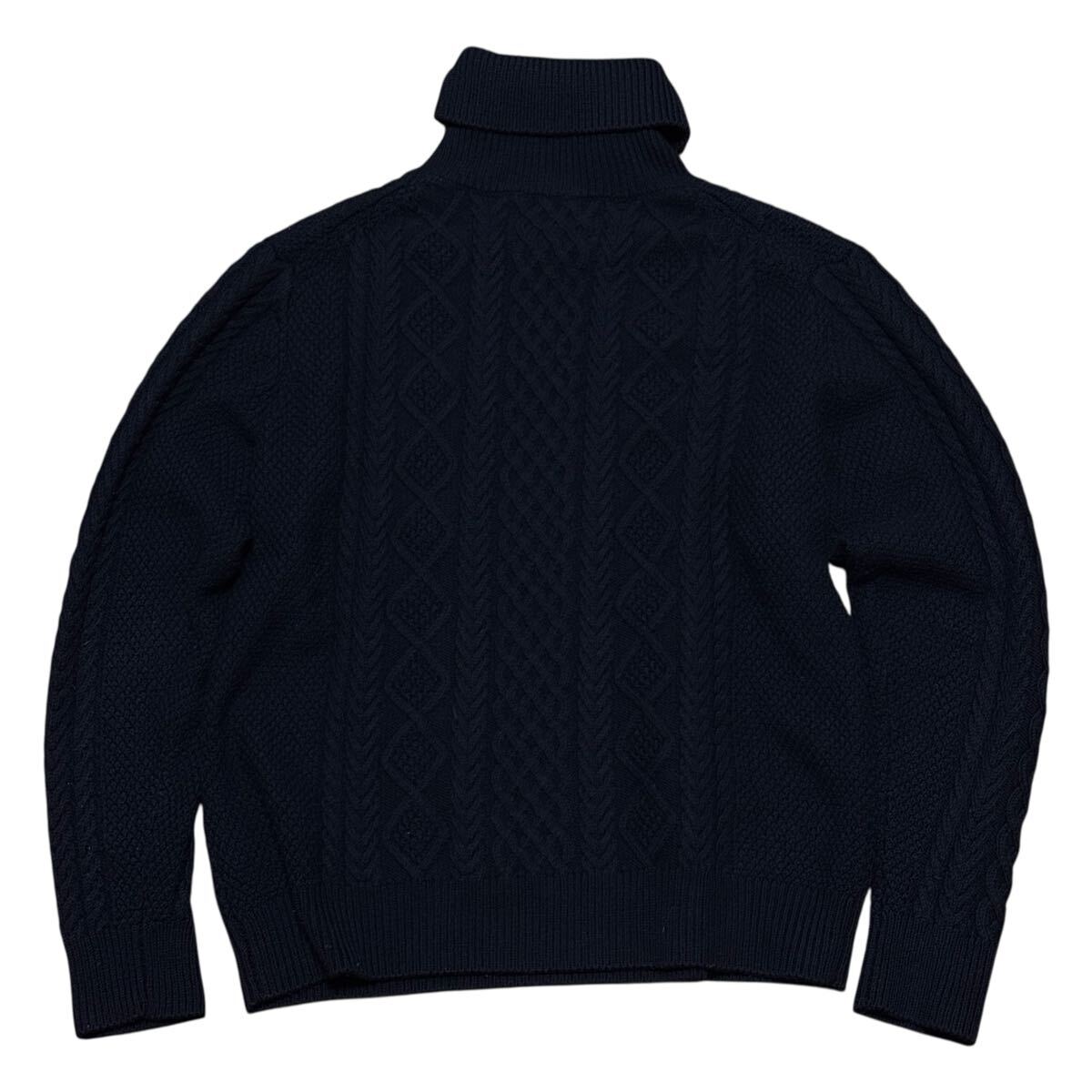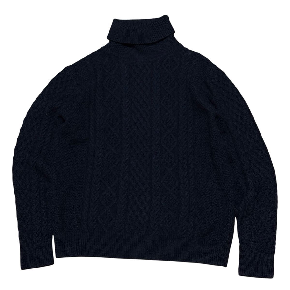高級感のあるネイビーカラーに、立体感のあるケーブル編みデザインが映えるタートルネックニットです。