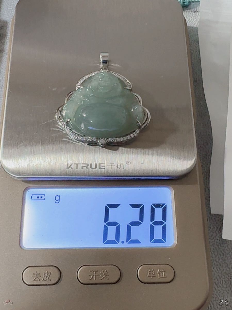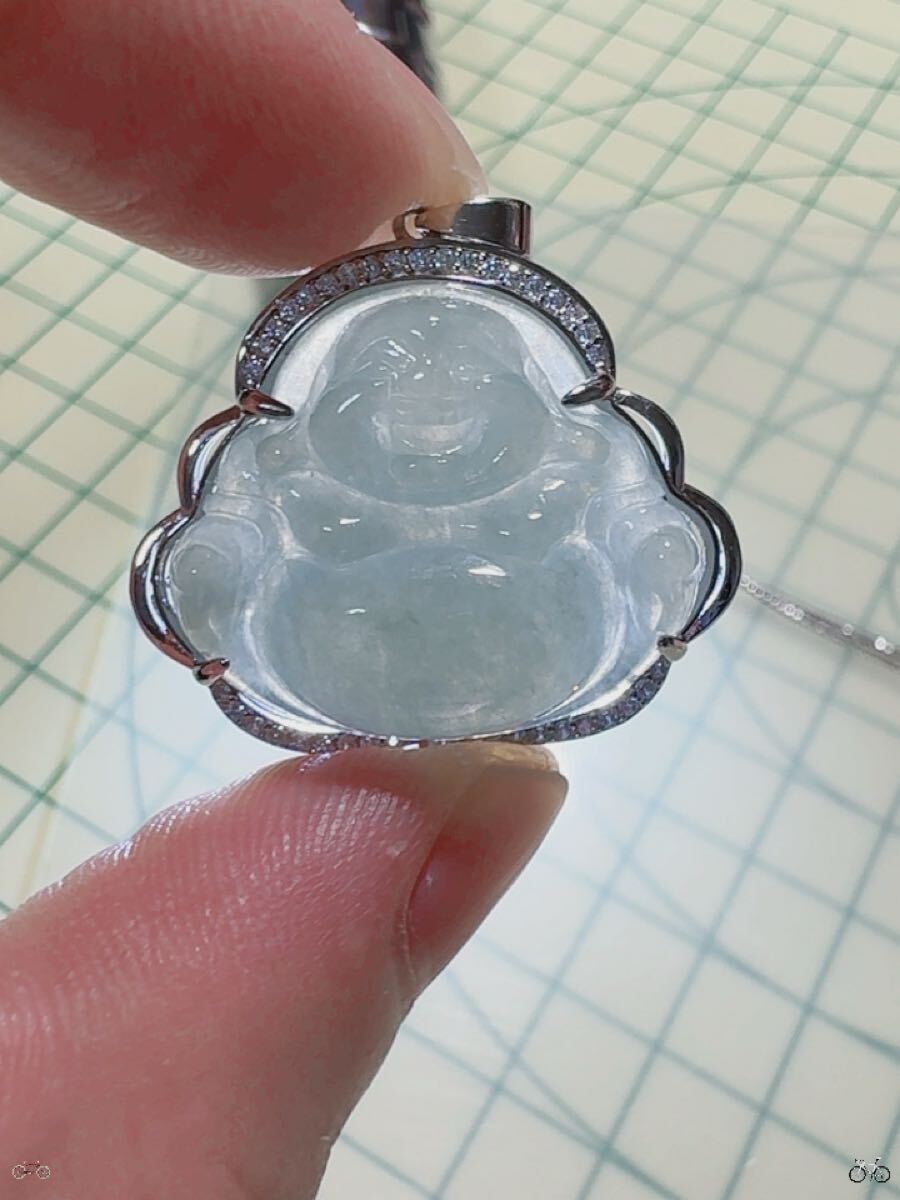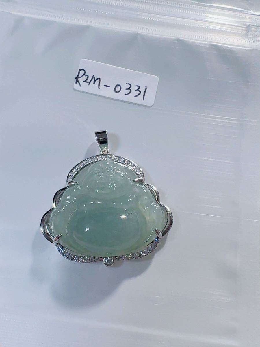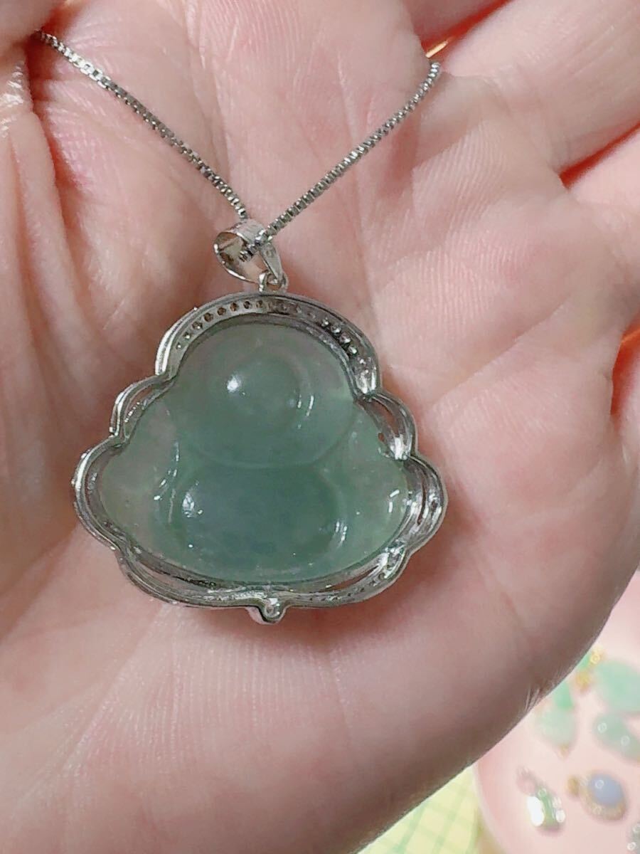 R2M-0331 天然石 《本物保証》美品 藍水翡翠 仏様ペンダント ネックレスSV925約45cm(調整可能) パワーストーン 縁起物