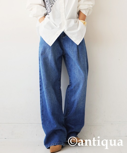 「antiqua」 加工デニムパンツ L ブルー レディース