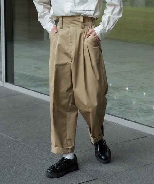 キーワード:チノパン メンズ ウエストゴム センタープレス テーパード ハイウエスト フルレングス ワイドパンツ 無地